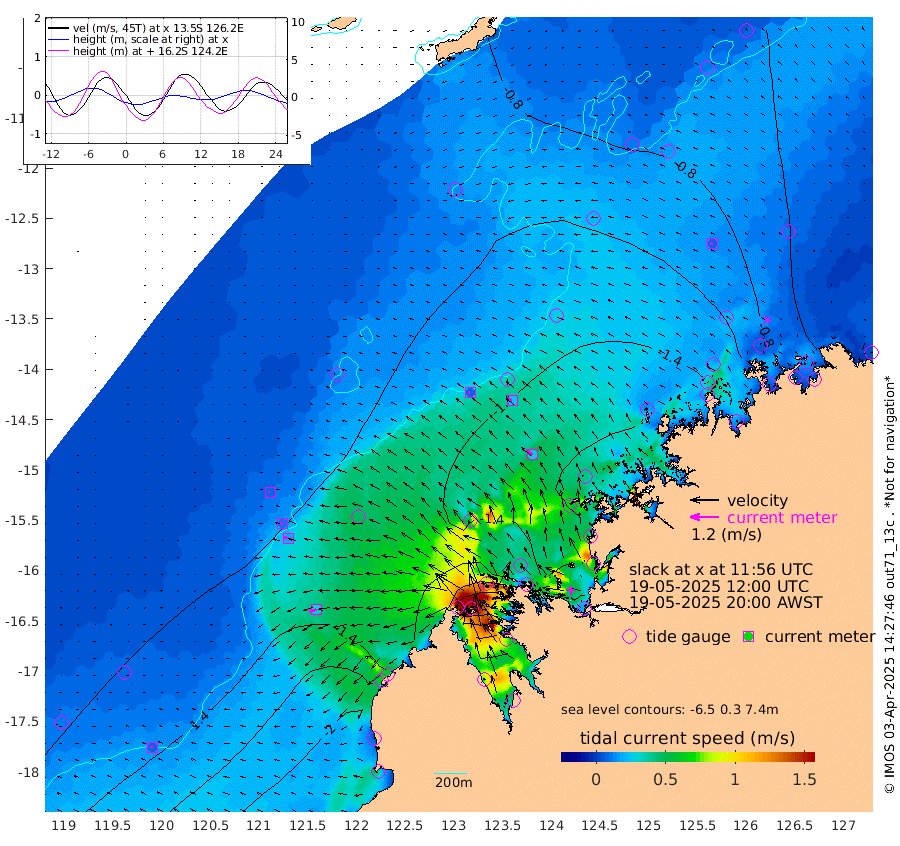 7cm/s -83T +10cm/s rms + 1cm/s 1T. NWSBRW 205m 9cm/s -79T +11cm/s rms + 6cm/s -110T. NWSROW 199m 32cm/s -49T +5cm/s rms + 2cm/s 65T. CAM050 58m 25cm/s -61T +12cm/s rms + 5cm/s 92T. CAM100 99m 7cm/s -91T +7cm/s rms + 1cm/s -85T. KIM400 396m 12cm/s -86T +9cm/s rms + 5cm/s -119T. KIM200 208m 20cm/s -78T +11cm/s rms + 5cm/s -147T. KIM100 99m 31cm/s -110T +8cm/s rms + 3cm/s -103T. KIM050 59m 9cm/s -79T +4cm/s rms + 2cm/s 23T. TIMORS88 91m -55cm Imperieuse Reef -102cm Mermaid Reef -209cm Broome -146cm Cape Baskerville -149cm Red Bluff -143cm Cape Boileau -91cm Scott Reef (WA) -99cm Ashmore Reef -116cm Karrakatta Bay -94cm Sunday Island 106cm Valentine Island 154cm Derby 44cm Port Usborne -155cm Bedford Islands -189cm Yampi Sound (Koolan Island) -175cm Macleay Island -144cm Adele Island -109cm Browse Island -206cm Shale Island -227cm Lizard Island -211cm Hall Point -185cm Degerando Island -183cm White Island -102cm Skua No. 4 Well -87cm Jabiru -170cm Maret Island -151cm Baudin Island -158cm Cape Voltaire (Krait Bay) -57cm Dillon Shoal -85cm Laminaria -150cm Port Warrender -98cm Troughton Island -144cm Cassini Island -106cm West Holothuria Reef Offshore -101cm Jar Island -131cm Lynher Bank -143cm Heywood Shoal -82cm Pee Shoal -61cm Van Cloon Shoal -76cm Carronade Island -75cm Guy Point -80cm Napier Broome Bay -22cm Lesueur Island