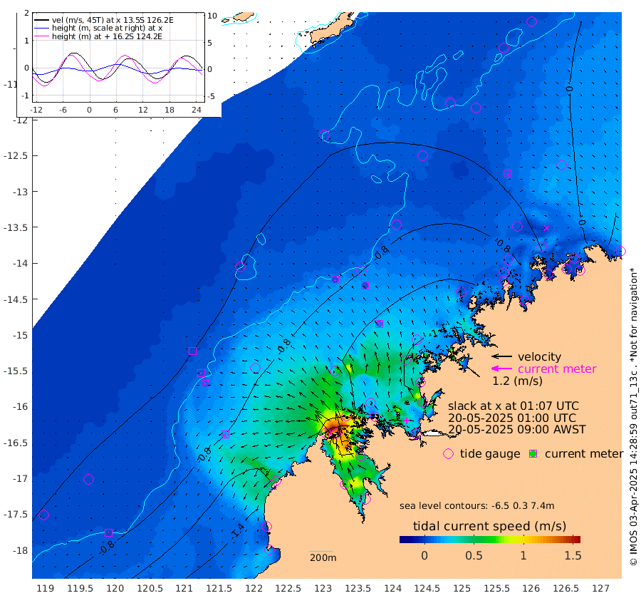 6cm/s 144T +10cm/s rms + 1cm/s 1T. NWSBRW 205m 2cm/s -98T +11cm/s rms + 6cm/s -110T. NWSROW 199m 10cm/s -32T +5cm/s rms + 2cm/s 65T. CAM050 58m 4cm/s -59T +12cm/s rms + 5cm/s 92T. CAM100 99m 2cm/s -117T +7cm/s rms + 1cm/s -85T. KIM400 396m 6cm/s -105T +9cm/s rms + 5cm/s -119T. KIM200 208m 9cm/s -97T +11cm/s rms + 5cm/s -147T. KIM100 99m 16cm/s -136T +8cm/s rms + 3cm/s -103T. KIM050 59m 10cm/s 130T +4cm/s rms + 2cm/s 23T. TIMORS88 91m -34cm Imperieuse Reef -44cm Mermaid Reef -137cm Broome -94cm Cape Baskerville -89cm Red Bluff -89cm Cape Boileau -37cm Scott Reef (WA) -37cm Ashmore Reef -101cm Karrakatta Bay -65cm Sunday Island 23cm Valentine Island 78cm Derby -2cm Port Usborne -111cm Bedford Islands -141cm Yampi Sound (Koolan Island) -143cm Macleay Island -86cm Adele Island -65cm Browse Island -177cm Shale Island -169cm Lizard Island -167cm Hall Point -127cm Degerando Island -123cm White Island -45cm Skua No. 4 Well -40cm Jabiru -97cm Maret Island -94cm Baudin Island -88cm Cape Voltaire (Krait Bay) -14cm Dillon Shoal -9cm Laminaria -87cm Port Warrender -43cm Troughton Island -74cm Cassini Island -42cm West Holothuria Reef Offshore -48cm Jar Island -64cm Lynher Bank -69cm Heywood Shoal -20cm Pee Shoal -4cm Van Cloon Shoal -14cm Carronade Island -15cm Guy Point -12cm Napier Broome Bay 31cm Lesueur Island