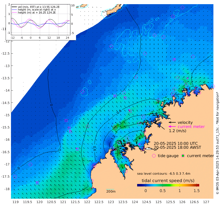 16cm/s -53T +10cm/s rms + 1cm/s 1T. NWSBRW 205m 19cm/s -39T +11cm/s rms + 6cm/s -110T. NWSROW 199m 37cm/s -32T +5cm/s rms + 2cm/s 65T. CAM050 58m 29cm/s -34T +12cm/s rms + 5cm/s 92T. CAM100 99m 6cm/s -43T +7cm/s rms + 1cm/s -85T. KIM400 396m 13cm/s -48T +9cm/s rms + 5cm/s -119T. KIM200 208m 24cm/s -40T +11cm/s rms + 5cm/s -147T. KIM100 99m 25cm/s -50T +8cm/s rms + 3cm/s -103T. KIM050 59m 18cm/s 22T +4cm/s rms + 2cm/s 23T. TIMORS88 91m 58cm Imperieuse Reef 0cm Mermaid Reef 24cm Broome 16cm Cape Baskerville 40cm Red Bluff 25cm Cape Boileau 6cm Scott Reef (WA) 21cm Ashmore Reef 120cm Karrakatta Bay 115cm Sunday Island 229cm Valentine Island 220cm Derby 199cm Port Usborne 81cm Bedford Islands 101cm Yampi Sound (Koolan Island) 134cm Macleay Island 58cm Adele Island -16cm Browse Island 155cm Shale Island 157cm Lizard Island 85cm Hall Point 62cm Degerando Island 46cm White Island 29cm Skua No. 4 Well 36cm Jabiru 25cm Maret Island 19cm Baudin Island 22cm Cape Voltaire (Krait Bay) 41cm Dillon Shoal 0cm Laminaria 32cm Port Warrender 32cm Troughton Island 25cm Cassini Island 19cm West Holothuria Reef Offshore 23cm Jar Island 14cm Lynher Bank 18cm Heywood Shoal 32cm Pee Shoal 20cm Van Cloon Shoal 0cm Carronade Island 1cm Guy Point 6cm Napier Broome Bay -20cm Lesueur Island