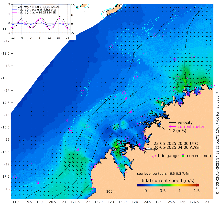 19cm/s 137T +10cm/s rms + 1cm/s 1T. NWSBRW 205m 22cm/s 148T +11cm/s rms + 6cm/s -110T. NWSROW 199m 35cm/s 150T +5cm/s rms + 2cm/s 65T. CAM050 58m 28cm/s 151T +12cm/s rms + 5cm/s 92T. CAM100 99m 6cm/s 147T +7cm/s rms + 1cm/s -85T. KIM400 396m 13cm/s 137T +9cm/s rms + 5cm/s -119T. KIM200 208m 28cm/s 146T +11cm/s rms + 5cm/s -147T. KIM100 99m 29cm/s 143T +8cm/s rms + 3cm/s -103T. KIM050 59m 12cm/s -132T +4cm/s rms + 2cm/s 23T. TIMORS88 91m -75cm Imperieuse Reef -18cm Mermaid Reef -104cm Broome -69cm Cape Baskerville -134cm Red Bluff -83cm Cape Boileau -22cm Scott Reef (WA) -46cm Ashmore Reef -182cm Karrakatta Bay -178cm Sunday Island -201cm Valentine Island -182cm Derby -192cm Port Usborne -167cm Bedford Islands -188cm Yampi Sound (Koolan Island) -218cm Macleay Island -122cm Adele Island -8cm Browse Island -240cm Shale Island -231cm Lizard Island -156cm Hall Point -144cm Degerando Island -111cm White Island -48cm Skua No. 4 Well -44cm Jabiru -87cm Maret Island -68cm Baudin Island -71cm Cape Voltaire (Krait Bay) -47cm Dillon Shoal 2cm Laminaria -86cm Port Warrender -42cm Troughton Island -73cm Cassini Island -43cm West Holothuria Reef Offshore -38cm Jar Island -51cm Lynher Bank -56cm Heywood Shoal -49cm Pee Shoal -28cm Van Cloon Shoal 0cm Carronade Island 7cm Guy Point -10cm Napier Broome Bay 62cm Lesueur Island