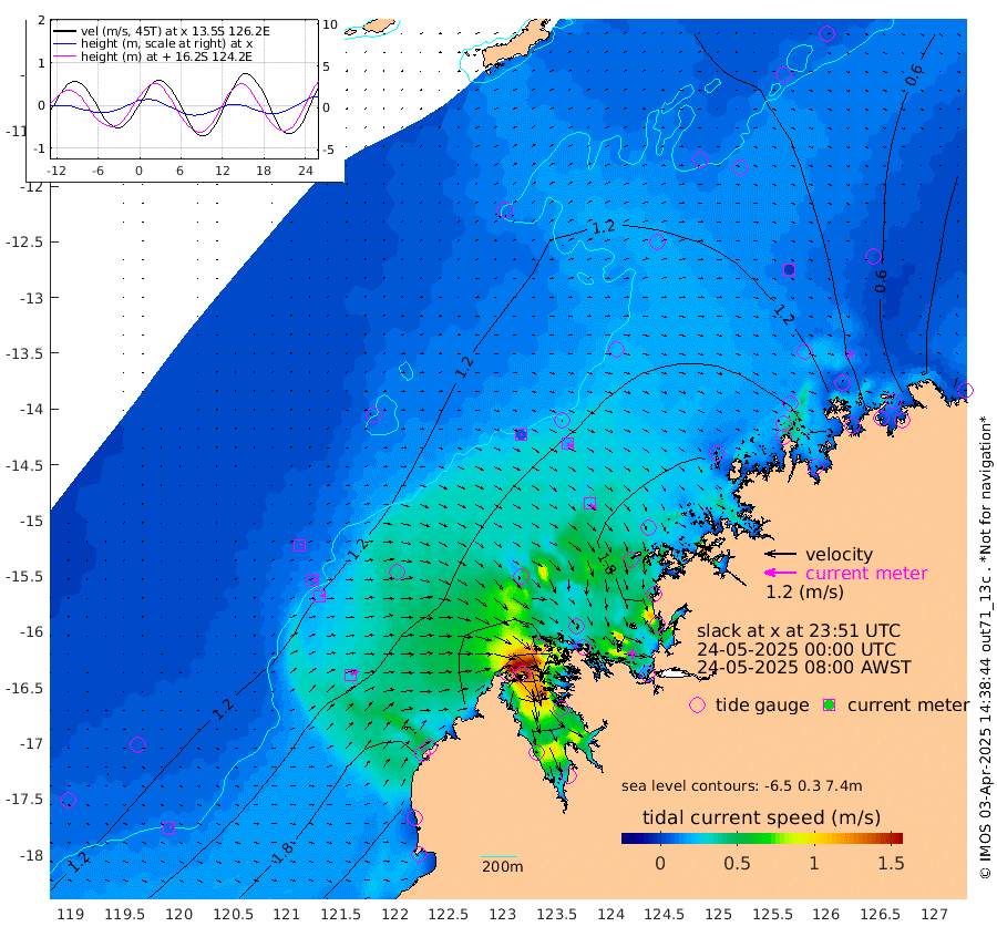 5cm/s 66T +10cm/s rms + 1cm/s 1T. NWSBRW 205m 9cm/s 79T +11cm/s rms + 6cm/s -110T. NWSROW 199m 29cm/s 127T +5cm/s rms + 2cm/s 65T. CAM050 58m 21cm/s 115T +12cm/s rms + 5cm/s 92T. CAM100 99m 7cm/s 81T +7cm/s rms + 1cm/s -85T. KIM400 396m 12cm/s 88T +9cm/s rms + 5cm/s -119T. KIM200 208m 20cm/s 83T +11cm/s rms + 5cm/s -147T. KIM100 99m 30cm/s 62T +8cm/s rms + 3cm/s -103T. KIM050 59m 1cm/s 137T +4cm/s rms + 2cm/s 23T. TIMORS88 91m 78cm Imperieuse Reef 114cm Mermaid Reef 234cm Broome 179cm Cape Baskerville 159cm Red Bluff 165cm Cape Boileau 111cm Scott Reef (WA) 125cm Ashmore Reef 166cm Karrakatta Bay 139cm Sunday Island 20cm Valentine Island -56cm Derby 44cm Port Usborne 206cm Bedford Islands 232cm Yampi Sound (Koolan Island) 290cm Macleay Island 203cm Adele Island 144cm Browse Island 252cm Shale Island 247cm Lizard Island 143cm Hall Point 217cm Degerando Island 211cm White Island 139cm Skua No. 4 Well 90cm Jabiru 207cm Maret Island 184cm Baudin Island 184cm Cape Voltaire (Krait Bay) 88cm Dillon Shoal 95cm Laminaria 184cm Port Warrender 148cm Troughton Island 187cm Cassini Island 140cm West Holothuria Reef Offshore 123cm Jar Island 146cm Lynher Bank 156cm Heywood Shoal 122cm Pee Shoal 82cm Van Cloon Shoal 88cm Carronade Island 88cm Guy Point 85cm Napier Broome Bay 30cm Lesueur Island