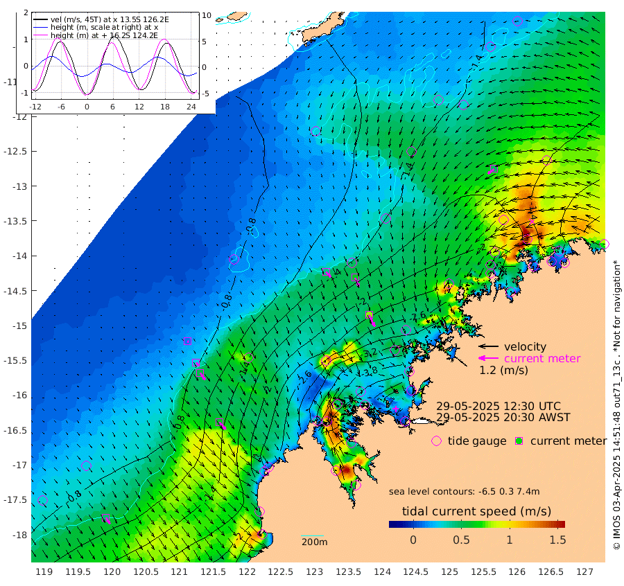 42cm/s 136T +10cm/s rms + 1cm/s 1T. NWSBRW 205m 45cm/s 149T +11cm/s rms + 6cm/s -110T. NWSROW 199m 79cm/s 154T +5cm/s rms + 2cm/s 65T. CAM050 58m 61cm/s 156T +12cm/s rms + 5cm/s 92T. CAM100 99m 12cm/s 148T +7cm/s rms + 1cm/s -85T. KIM400 396m 27cm/s 140T +9cm/s rms + 5cm/s -119T. KIM200 208m 52cm/s 146T +11cm/s rms + 5cm/s -147T. KIM100 99m 59cm/s 140T +8cm/s rms + 3cm/s -103T. KIM050 59m 49cm/s -127T +4cm/s rms + 2cm/s 23T. TIMORS88 91m -176cm Imperieuse Reef -66cm Mermaid Reef -156cm Broome -113cm Cape Baskerville -184cm Red Bluff -120cm Cape Boileau -67cm Scott Reef (WA) -120cm Ashmore Reef -327cm Karrakatta Bay -343cm Sunday Island -441cm Valentine Island -434cm Derby -428cm Port Usborne -302cm Bedford Islands -329cm Yampi Sound (Koolan Island) -325cm Macleay Island -195cm Adele Island 16cm Browse Island -441cm Shale Island -431cm Lizard Island -313cm Hall Point -247cm Degerando Island -193cm White Island -114cm Skua No. 4 Well -138cm Jabiru -153cm Maret Island -136cm Baudin Island -142cm Cape Voltaire (Krait Bay) -132cm Dillon Shoal -72cm Laminaria -171cm Port Warrender -140cm Troughton Island -137cm Cassini Island -110cm West Holothuria Reef Offshore -124cm Jar Island -123cm Lynher Bank -124cm Heywood Shoal -129cm Pee Shoal -110cm Van Cloon Shoal -74cm Carronade Island -75cm Guy Point -81cm Napier Broome Bay -43cm Lesueur Island