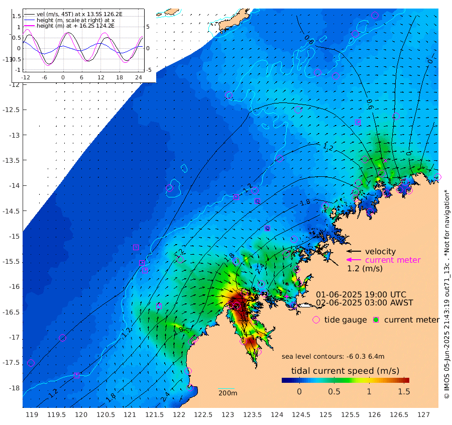 9cm/s -24T +10cm/s rms + 1cm/s 1T. NWSBRW 205m 11cm/s -2T +11cm/s rms + 6cm/s -110T. NWSROW 199m 4cm/s 69T +5cm/s rms + 2cm/s 65T. CAM050 58m 7cm/s 53T +12cm/s rms + 5cm/s 92T. CAM100 99m 5cm/s 57T +7cm/s rms + 1cm/s -85T. KIM400 396m 8cm/s 50T +9cm/s rms + 5cm/s -119T. KIM200 208m 13cm/s 43T +11cm/s rms + 5cm/s -147T. KIM100 99m 24cm/s 26T +8cm/s rms + 3cm/s -103T. KIM050 59m 16cm/s 50T +4cm/s rms + 2cm/s 23T. TIMORS88 91m 69cm Imperieuse Reef 79cm Mermaid Reef 210cm Broome 143cm Cape Baskerville 169cm Red Bluff 125cm Cape Boileau 68cm Scott Reef (WA) 77cm Ashmore Reef 189cm Karrakatta Bay 174cm Sunday Island 78cm Valentine Island 6cm Derby 105cm Port Usborne 224cm Bedford Islands 261cm Yampi Sound (Koolan Island) 277cm Macleay Island 173cm Adele Island 74cm Browse Island 321cm Shale Island 321cm Lizard Island 302cm Hall Point 218cm Degerando Island 208cm White Island 77cm Skua No. 4 Well 62cm Jabiru 160cm Maret Island 139cm Baudin Island 134cm Cape Voltaire (Krait Bay) 38cm Dillon Shoal 48cm Laminaria 146cm Port Warrender 63cm Troughton Island 113cm Cassini Island 76cm West Holothuria Reef Offshore 63cm Jar Island 123cm Lynher Bank 111cm Heywood Shoal 56cm Pee Shoal 13cm Van Cloon Shoal 10cm Carronade Island 11cm Guy Point 0cm Napier Broome Bay -76cm Lesueur Island