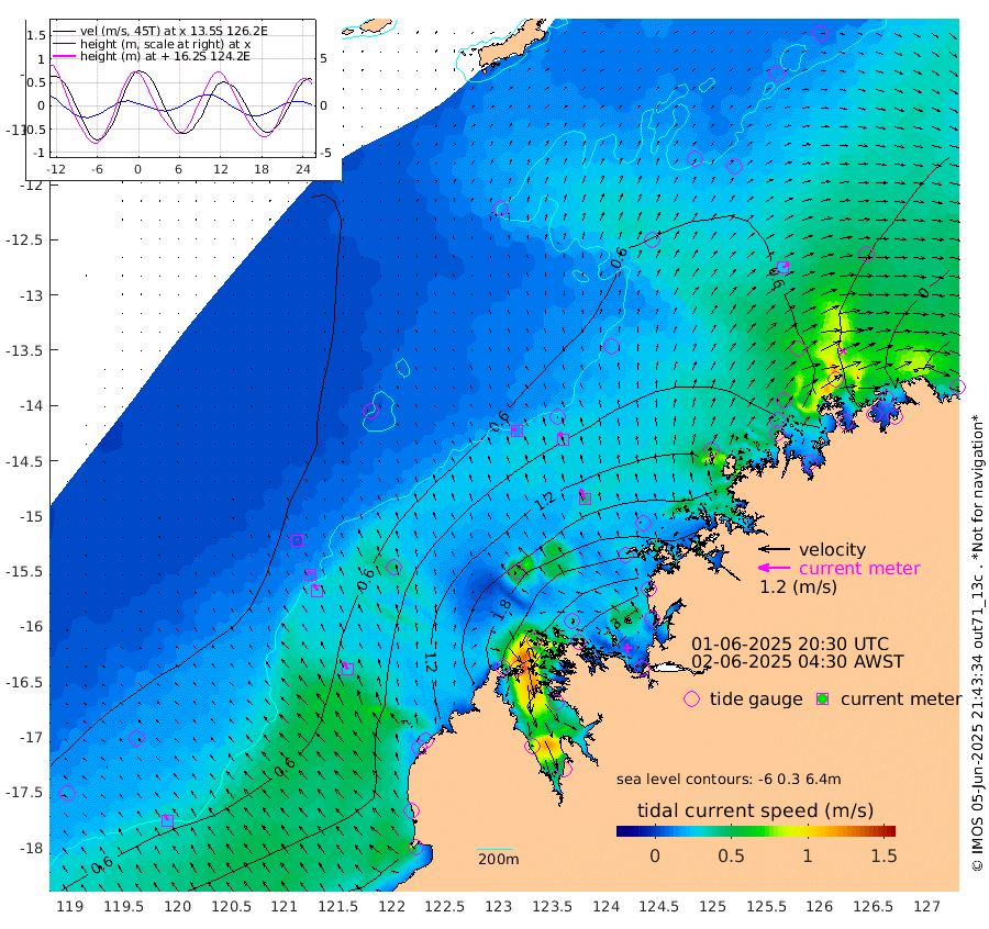 18cm/s -48T +10cm/s rms + 1cm/s 1T. NWSBRW 205m 25cm/s -32T +11cm/s rms + 6cm/s -110T. NWSROW 199m 42cm/s -23T +5cm/s rms + 2cm/s 65T. CAM050 58m 32cm/s -21T +12cm/s rms + 5cm/s 92T. CAM100 99m 5cm/s -20T +7cm/s rms + 1cm/s -85T. KIM400 396m 14cm/s -30T +9cm/s rms + 5cm/s -119T. KIM200 208m 28cm/s -28T +11cm/s rms + 5cm/s -147T. KIM100 99m 30cm/s -33T +8cm/s rms + 3cm/s -103T. KIM050 59m 29cm/s 52T +4cm/s rms + 2cm/s 23T. TIMORS88 91m 80cm Imperieuse Reef 29cm Mermaid Reef 90cm Broome 57cm Cape Baskerville 89cm Red Bluff 43cm Cape Boileau 28cm Scott Reef (WA) 46cm Ashmore Reef 178cm Karrakatta Bay 190cm Sunday Island 259cm Valentine Island 234cm Derby 251cm Port Usborne 186cm Bedford Islands 194cm Yampi Sound (Koolan Island) 213cm Macleay Island 113cm Adele Island -12cm Browse Island 268cm Shale Island 273cm Lizard Island 153cm Hall Point 137cm Degerando Island 109cm White Island 44cm Skua No. 4 Well 35cm Jabiru 73cm Maret Island 55cm Baudin Island 53cm Cape Voltaire (Krait Bay) 33cm Dillon Shoal 27cm Laminaria 65cm Port Warrender 31cm Troughton Island 44cm Cassini Island 27cm West Holothuria Reef Offshore 20cm Jar Island 67cm Lynher Bank 41cm Heywood Shoal 44cm Pee Shoal 5cm Van Cloon Shoal -22cm Carronade Island -24cm Guy Point -31cm Napier Broome Bay -68cm Lesueur Island