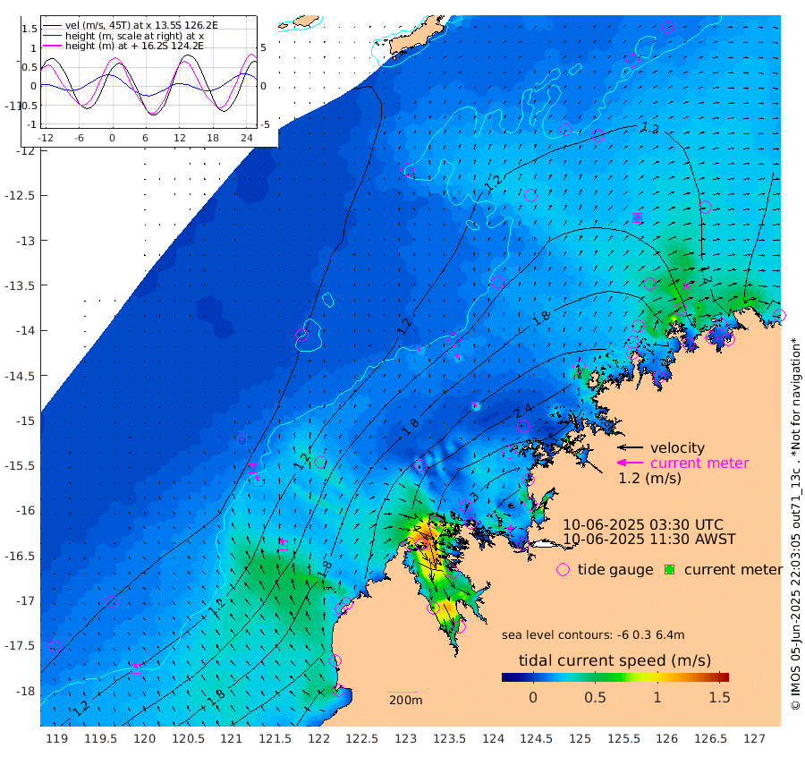 19cm/s -34T +10cm/s rms + 1cm/s 1T. NWSBRW 205m 23cm/s -22T +11cm/s rms + 6cm/s -110T. NWSROW 199m 27cm/s -29T +5cm/s rms + 2cm/s 65T. CAM050 58m 23cm/s -18T +12cm/s rms + 5cm/s 92T. CAM100 99m 6cm/s -16T +7cm/s rms + 1cm/s -85T. KIM400 396m 11cm/s -22T +9cm/s rms + 5cm/s -119T. KIM200 208m 25cm/s -19T +11cm/s rms + 5cm/s -147T. KIM100 99m 33cm/s -15T +8cm/s rms + 3cm/s -103T. KIM050 59m 15cm/s 30T +4cm/s rms + 2cm/s 23T. TIMORS88 91m 121cm Imperieuse Reef 78cm Mermaid Reef 207cm Broome 153cm Cape Baskerville 199cm Red Bluff 162cm Cape Boileau 76cm Scott Reef (WA) 112cm Ashmore Reef 252cm Karrakatta Bay 248cm Sunday Island 219cm Valentine Island 174cm Derby 215cm Port Usborne 250cm Bedford Islands 297cm Yampi Sound (Koolan Island) 321cm Macleay Island 205cm Adele Island 72cm Browse Island 355cm Shale Island 340cm Lizard Island 360cm Hall Point 248cm Degerando Island 228cm White Island 106cm Skua No. 4 Well 122cm Jabiru 188cm Maret Island 177cm Baudin Island 173cm Cape Voltaire (Krait Bay) 105cm Dillon Shoal 47cm Laminaria 213cm Port Warrender 148cm Troughton Island 167cm Cassini Island 135cm West Holothuria Reef Offshore 140cm Jar Island 129cm Lynher Bank 135cm Heywood Shoal 108cm Pee Shoal 103cm Van Cloon Shoal 100cm Carronade Island 99cm Guy Point 106cm Napier Broome Bay 52cm Lesueur Island