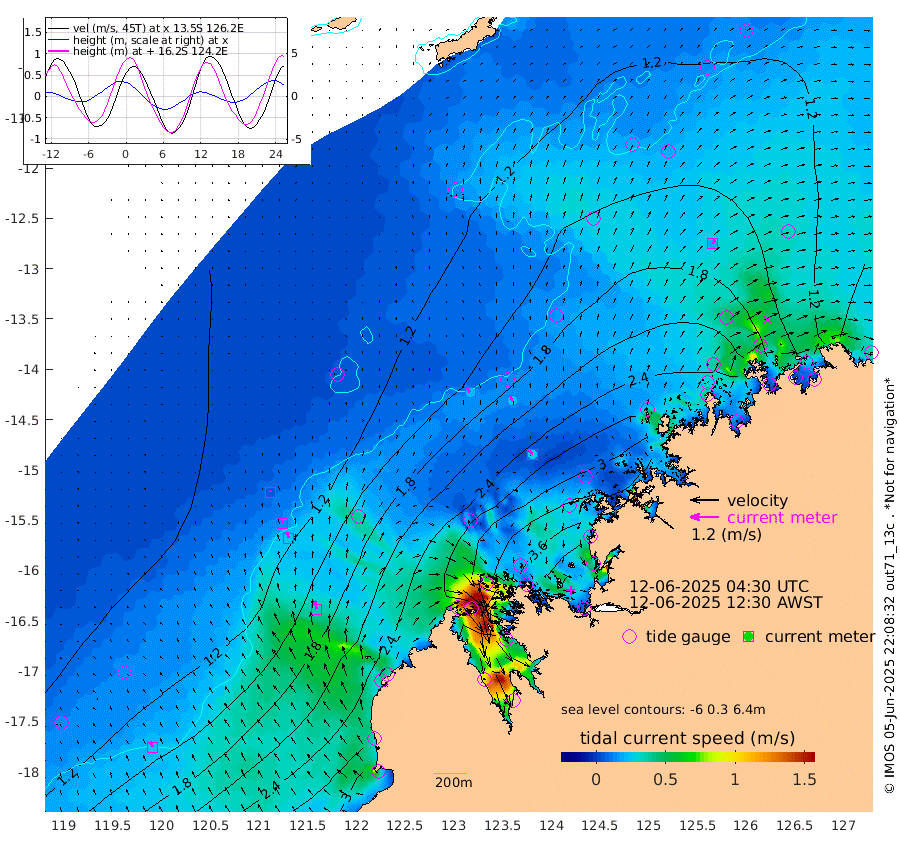 23cm/s -35T +10cm/s rms + 1cm/s 1T. NWSBRW 205m 25cm/s -22T +11cm/s rms + 6cm/s -110T. NWSROW 199m 28cm/s -30T +5cm/s rms + 2cm/s 65T. CAM050 58m 25cm/s -18T +12cm/s rms + 5cm/s 92T. CAM100 99m 7cm/s -14T +7cm/s rms + 1cm/s -85T. KIM400 396m 13cm/s -19T +9cm/s rms + 5cm/s -119T. KIM200 208m 26cm/s -17T +11cm/s rms + 5cm/s -147T. KIM100 99m 37cm/s -12T +8cm/s rms + 3cm/s -103T. KIM050 59m 20cm/s 28T +4cm/s rms + 2cm/s 23T. TIMORS88 91m 140cm Imperieuse Reef 91cm Mermaid Reef 246cm Broome 184cm Cape Baskerville 243cm Red Bluff 191cm Cape Boileau 85cm Scott Reef (WA) 129cm Ashmore Reef 301cm Karrakatta Bay 279cm Sunday Island 247cm Valentine Island 178cm Derby 236cm Port Usborne 286cm Bedford Islands 347cm Yampi Sound (Koolan Island) 367cm Macleay Island 234cm Adele Island 84cm Browse Island 425cm Shale Island 404cm Lizard Island 440cm Hall Point 290cm Degerando Island 267cm White Island 125cm Skua No. 4 Well 142cm Jabiru 219cm Maret Island 212cm Baudin Island 201cm Cape Voltaire (Krait Bay) 118cm Dillon Shoal 53cm Laminaria 244cm Port Warrender 171cm Troughton Island 196cm Cassini Island 155cm West Holothuria Reef Offshore 165cm Jar Island 146cm Lynher Bank 159cm Heywood Shoal 123cm Pee Shoal 116cm Van Cloon Shoal 112cm Carronade Island 110cm Guy Point 120cm Napier Broome Bay 55cm Lesueur Island