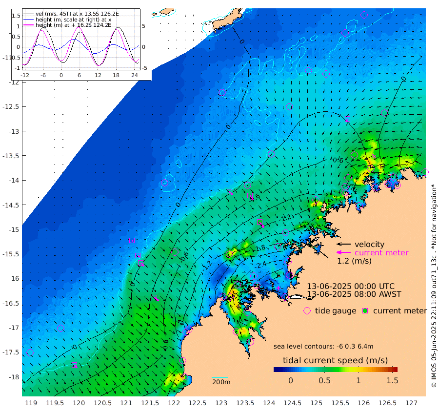 36cm/s 131T +10cm/s rms + 1cm/s 1T. NWSBRW 205m 33cm/s 143T +11cm/s rms + 6cm/s -110T. NWSROW 199m 60cm/s 144T +5cm/s rms + 2cm/s 65T. CAM050 58m 48cm/s 142T +12cm/s rms + 5cm/s 92T. CAM100 99m 9cm/s 133T +7cm/s rms + 1cm/s -85T. KIM400 396m 20cm/s 133T +9cm/s rms + 5cm/s -119T. KIM200 208m 40cm/s 140T +11cm/s rms + 5cm/s -147T. KIM100 99m 46cm/s 127T +8cm/s rms + 3cm/s -103T. KIM050 59m 25cm/s -147T +4cm/s rms + 2cm/s 23T. TIMORS88 91m -59cm Imperieuse Reef 25cm Mermaid Reef -56cm Broome -21cm Cape Baskerville -97cm Red Bluff -23cm Cape Boileau 27cm Scott Reef (WA) 6cm Ashmore Reef -183cm Karrakatta Bay -183cm Sunday Island -259cm Valentine Island -252cm Derby -251cm Port Usborne -153cm Bedford Islands -184cm Yampi Sound (Koolan Island) -191cm Macleay Island -78cm Adele Island 52cm Browse Island -273cm Shale Island -235cm Lizard Island -271cm Hall Point -119cm Degerando Island -87cm White Island 16cm Skua No. 4 Well -9cm Jabiru -27cm Maret Island -23cm Baudin Island -12cm Cape Voltaire (Krait Bay) -1cm Dillon Shoal 58cm Laminaria -36cm Port Warrender 25cm Troughton Island -1cm Cassini Island 17cm West Holothuria Reef Offshore 13cm Jar Island -11cm Lynher Bank 8cm Heywood Shoal 19cm Pee Shoal 36cm Van Cloon Shoal 64cm Carronade Island 71cm Guy Point 69cm Napier Broome Bay 127cm Lesueur Island