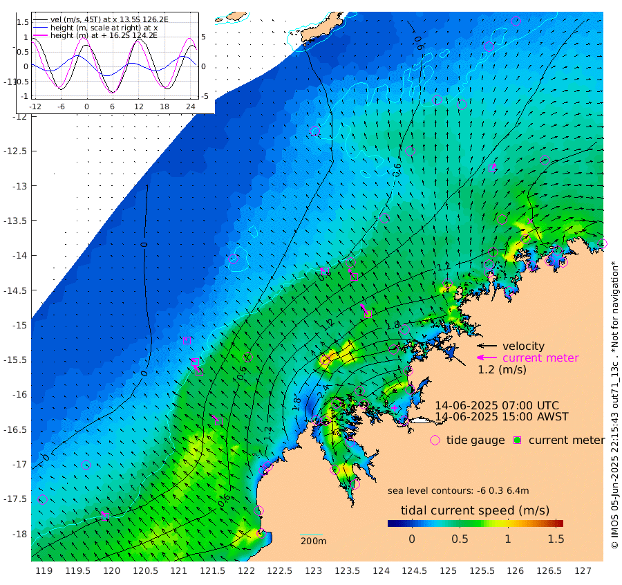 33cm/s -53T +10cm/s rms + 1cm/s 1T. NWSBRW 205m 40cm/s -38T +11cm/s rms + 6cm/s -110T. NWSROW 199m 76cm/s -34T +5cm/s rms + 2cm/s 65T. CAM050 58m 59cm/s -33T +12cm/s rms + 5cm/s 92T. CAM100 99m 13cm/s -49T +7cm/s rms + 1cm/s -85T. KIM400 396m 27cm/s -48T +9cm/s rms + 5cm/s -119T. KIM200 208m 50cm/s -41T +11cm/s rms + 5cm/s -147T. KIM100 99m 54cm/s -50T +8cm/s rms + 3cm/s -103T. KIM050 59m 32cm/s 27T +4cm/s rms + 2cm/s 23T. TIMORS88 91m 112cm Imperieuse Reef -3cm Mermaid Reef 61cm Broome 41cm Cape Baskerville 110cm Red Bluff 53cm Cape Boileau -1cm Scott Reef (WA) 39cm Ashmore Reef 231cm Karrakatta Bay 231cm Sunday Island 389cm Valentine Island 374cm Derby 341cm Port Usborne 176cm Bedford Islands 214cm Yampi Sound (Koolan Island) 215cm Macleay Island 102cm Adele Island -43cm Browse Island 311cm Shale Island 295cm Lizard Island 262cm Hall Point 144cm Degerando Island 112cm White Island 30cm Skua No. 4 Well 59cm Jabiru 60cm Maret Island 64cm Baudin Island 57cm Cape Voltaire (Krait Bay) 61cm Dillon Shoal -22cm Laminaria 100cm Port Warrender 70cm Troughton Island 54cm Cassini Island 44cm West Holothuria Reef Offshore 69cm Jar Island 37cm Lynher Bank 29cm Heywood Shoal 43cm Pee Shoal 51cm Van Cloon Shoal 28cm Carronade Island 24cm Guy Point 33cm Napier Broome Bay 14cm Lesueur Island