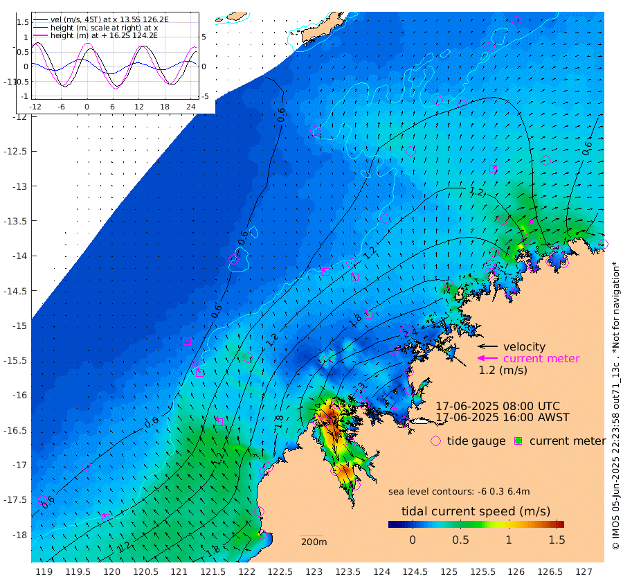 22cm/s -44T +10cm/s rms + 1cm/s 1T. NWSBRW 205m 26cm/s -29T +11cm/s rms + 6cm/s -110T. NWSROW 199m 38cm/s -31T +5cm/s rms + 2cm/s 65T. CAM050 58m 32cm/s -27T +12cm/s rms + 5cm/s 92T. CAM100 99m 7cm/s -25T +7cm/s rms + 1cm/s -85T. KIM400 396m 14cm/s -32T +9cm/s rms + 5cm/s -119T. KIM200 208m 28cm/s -28T +11cm/s rms + 5cm/s -147T. KIM100 99m 34cm/s -24T +8cm/s rms + 3cm/s -103T. KIM050 59m 25cm/s 31T +4cm/s rms + 2cm/s 23T. TIMORS88 91m 116cm Imperieuse Reef 54cm Mermaid Reef 168cm Broome 115cm Cape Baskerville 163cm Red Bluff 128cm Cape Boileau 54cm Scott Reef (WA) 81cm Ashmore Reef 246cm Karrakatta Bay 228cm Sunday Island 251cm Valentine Island 205cm Derby 246cm Port Usborne 222cm Bedford Islands 271cm Yampi Sound (Koolan Island) 287cm Macleay Island 165cm Adele Island 35cm Browse Island 359cm Shale Island 367cm Lizard Island 238cm Hall Point 214cm Degerando Island 185cm White Island 88cm Skua No. 4 Well 78cm Jabiru 138cm Maret Island 121cm Baudin Island 131cm Cape Voltaire (Krait Bay) 81cm Dillon Shoal 29cm Laminaria 151cm Port Warrender 99cm Troughton Island 120cm Cassini Island 86cm West Holothuria Reef Offshore 96cm Jar Island 98cm Lynher Bank 109cm Heywood Shoal 81cm Pee Shoal 62cm Van Cloon Shoal 46cm Carronade Island 45cm Guy Point 56cm Napier Broome Bay -15cm Lesueur Island