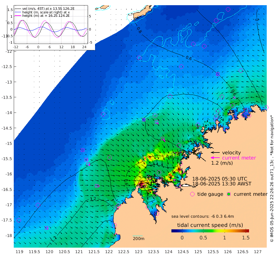 9cm/s 108T +10cm/s rms + 1cm/s 1T. NWSBRW 205m 19cm/s 127T +11cm/s rms + 6cm/s -110T. NWSROW 199m 53cm/s 142T +5cm/s rms + 2cm/s 65T. CAM050 58m 36cm/s 137T +12cm/s rms + 5cm/s 92T. CAM100 99m 8cm/s 108T +7cm/s rms + 1cm/s -85T. KIM400 396m 16cm/s 114T +9cm/s rms + 5cm/s -119T. KIM200 208m 29cm/s 121T +11cm/s rms + 5cm/s -147T. KIM100 99m 38cm/s 95T +8cm/s rms + 3cm/s -103T. KIM050 59m 9cm/s -121T +4cm/s rms + 2cm/s 23T. TIMORS88 91m 14cm Imperieuse Reef 83cm Mermaid Reef 169cm Broome 121cm Cape Baskerville 101cm Red Bluff 138cm Cape Boileau 77cm Scott Reef (WA) 66cm Ashmore Reef 25cm Karrakatta Bay 4cm Sunday Island -224cm Valentine Island -272cm Derby -167cm Port Usborne 66cm Bedford Islands 95cm Yampi Sound (Koolan Island) 82cm Macleay Island 90cm Adele Island 124cm Browse Island 74cm Shale Island 118cm Lizard Island 133cm Hall Point 125cm Degerando Island 135cm White Island 75cm Skua No. 4 Well 61cm Jabiru 132cm Maret Island 116cm Baudin Island 134cm Cape Voltaire (Krait Bay) 34cm Dillon Shoal 54cm Laminaria 132cm Port Warrender 80cm Troughton Island 116cm Cassini Island 90cm West Holothuria Reef Offshore 90cm Jar Island 99cm Lynher Bank 123cm Heywood Shoal 55cm Pee Shoal 58cm Van Cloon Shoal 89cm Carronade Island 91cm Guy Point 105cm Napier Broome Bay 52cm Lesueur Island