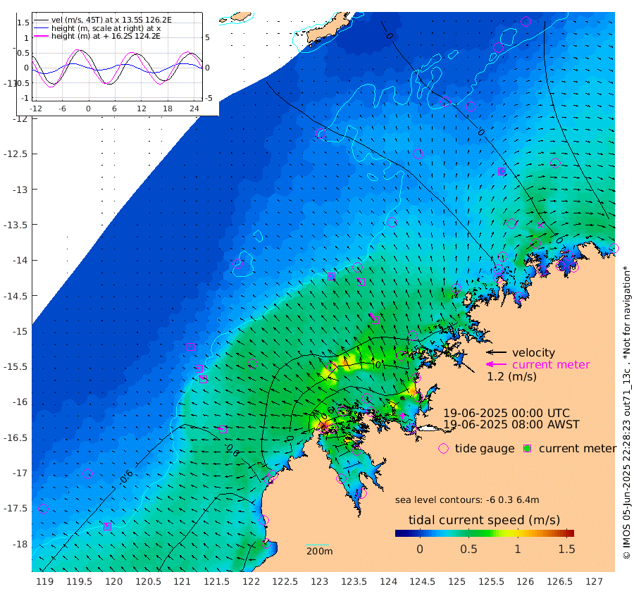 15cm/s -53T +10cm/s rms + 1cm/s 1T. NWSBRW 205m 21cm/s -42T +11cm/s rms + 6cm/s -110T. NWSROW 199m 52cm/s -34T +5cm/s rms + 2cm/s 65T. CAM050 58m 35cm/s -37T +12cm/s rms + 5cm/s 92T. CAM100 99m 7cm/s -64T +7cm/s rms + 1cm/s -85T. KIM400 396m 17cm/s -63T +9cm/s rms + 5cm/s -119T. KIM200 208m 33cm/s -53T +11cm/s rms + 5cm/s -147T. KIM100 99m 36cm/s -79T +8cm/s rms + 3cm/s -103T. KIM050 59m 12cm/s 60T +4cm/s rms + 2cm/s 23T. TIMORS88 91m 22cm Imperieuse Reef -49cm Mermaid Reef -111cm Broome -81cm Cape Baskerville -50cm Red Bluff -82cm Cape Boileau -42cm Scott Reef (WA) -18cm Ashmore Reef 26cm Karrakatta Bay 51cm Sunday Island 237cm Valentine Island 288cm Derby 195cm Port Usborne -16cm Bedford Islands -30cm Yampi Sound (Koolan Island) -18cm Macleay Island -34cm Adele Island -88cm Browse Island -8cm Shale Island -18cm Lizard Island -66cm Hall Point -62cm Degerando Island -75cm White Island -30cm Skua No. 4 Well -16cm Jabiru -70cm Maret Island -64cm Baudin Island -72cm Cape Voltaire (Krait Bay) 6cm Dillon Shoal -20cm Laminaria -64cm Port Warrender -18cm Troughton Island -54cm Cassini Island -34cm West Holothuria Reef Offshore -29cm Jar Island -52cm Lynher Bank -73cm Heywood Shoal -4cm Pee Shoal 2cm Van Cloon Shoal -26cm Carronade Island -33cm Guy Point -29cm Napier Broome Bay 9cm Lesueur Island
