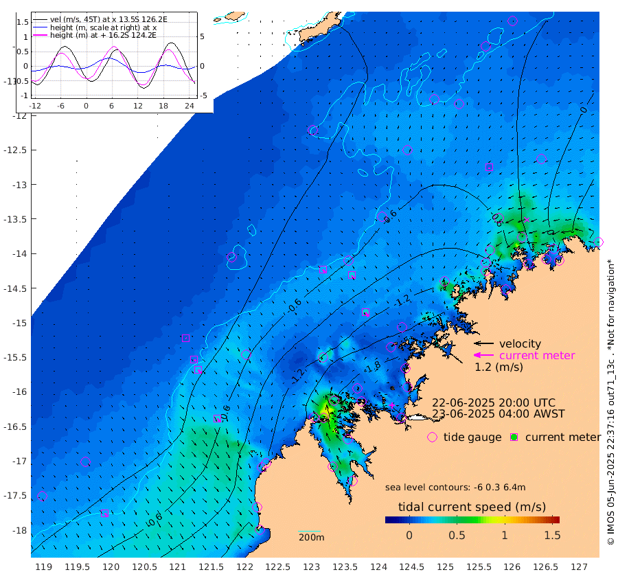 21cm/s 136T +10cm/s rms + 1cm/s 1T. NWSBRW 205m 21cm/s 147T +11cm/s rms + 6cm/s -110T. NWSROW 199m 32cm/s 145T +5cm/s rms + 2cm/s 65T. CAM050 58m 27cm/s 147T +12cm/s rms + 5cm/s 92T. CAM100 99m 5cm/s 146T +7cm/s rms + 1cm/s -85T. KIM400 396m 12cm/s 139T +9cm/s rms + 5cm/s -119T. KIM200 208m 26cm/s 148T +11cm/s rms + 5cm/s -147T. KIM100 99m 28cm/s 141T +8cm/s rms + 3cm/s -103T. KIM050 59m 8cm/s -164T +4cm/s rms + 2cm/s 23T. TIMORS88 91m -60cm Imperieuse Reef -6cm Mermaid Reef -96cm Broome -60cm Cape Baskerville -109cm Red Bluff -67cm Cape Boileau -10cm Scott Reef (WA) -28cm Ashmore Reef -169cm Karrakatta Bay -155cm Sunday Island -188cm Valentine Island -160cm Derby -180cm Port Usborne -159cm Bedford Islands -173cm Yampi Sound (Koolan Island) -214cm Macleay Island -108cm Adele Island -11cm Browse Island -227cm Shale Island -219cm Lizard Island -170cm Hall Point -130cm Degerando Island -97cm White Island -32cm Skua No. 4 Well -32cm Jabiru -76cm Maret Island -56cm Baudin Island -52cm Cape Voltaire (Krait Bay) -18cm Dillon Shoal 24cm Laminaria -61cm Port Warrender -19cm Troughton Island -52cm Cassini Island -19cm West Holothuria Reef Offshore -13cm Jar Island -39cm Lynher Bank -30cm Heywood Shoal -26cm Pee Shoal 3cm Van Cloon Shoal 30cm Carronade Island 39cm Guy Point 26cm Napier Broome Bay 95cm Lesueur Island
