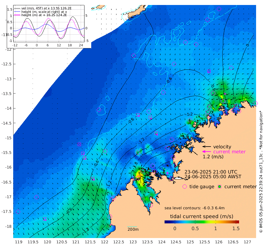 26cm/s 136T +10cm/s rms + 1cm/s 1T. NWSBRW 205m 24cm/s 147T +11cm/s rms + 6cm/s -110T. NWSROW 199m 36cm/s 146T +5cm/s rms + 2cm/s 65T. CAM050 58m 32cm/s 146T +12cm/s rms + 5cm/s 92T. CAM100 99m 6cm/s 145T +7cm/s rms + 1cm/s -85T. KIM400 396m 14cm/s 141T +9cm/s rms + 5cm/s -119T. KIM200 208m 30cm/s 149T +11cm/s rms + 5cm/s -147T. KIM100 99m 33cm/s 141T +8cm/s rms + 3cm/s -103T. KIM050 59m 12cm/s -156T +4cm/s rms + 2cm/s 23T. TIMORS88 91m -68cm Imperieuse Reef -6cm Mermaid Reef -115cm Broome -72cm Cape Baskerville -130cm Red Bluff -77cm Cape Boileau -9cm Scott Reef (WA) -29cm Ashmore Reef -196cm Karrakatta Bay -176cm Sunday Island -209cm Valentine Island -170cm Derby -200cm Port Usborne -188cm Bedford Islands -204cm Yampi Sound (Koolan Island) -241cm Macleay Island -122cm Adele Island -10cm Browse Island -271cm Shale Island -255cm Lizard Island -228cm Hall Point -156cm Degerando Island -116cm White Island -32cm Skua No. 4 Well -37cm Jabiru -88cm Maret Island -67cm Baudin Island -62cm Cape Voltaire (Krait Bay) -16cm Dillon Shoal 32cm Laminaria -74cm Port Warrender -18cm Troughton Island -59cm Cassini Island -18cm West Holothuria Reef Offshore -14cm Jar Island -46cm Lynher Bank -35cm Heywood Shoal -24cm Pee Shoal 9cm Van Cloon Shoal 39cm Carronade Island 47cm Guy Point 36cm Napier Broome Bay 113cm Lesueur Island