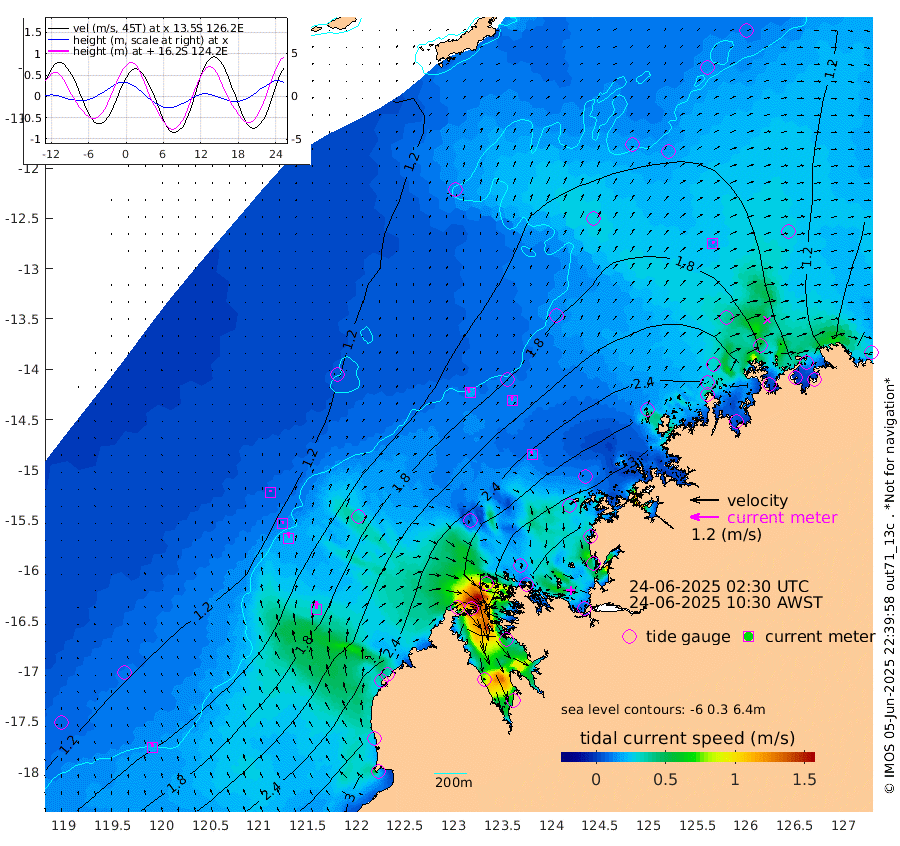 19cm/s -29T +10cm/s rms + 1cm/s 1T. NWSBRW 205m 21cm/s -14T +11cm/s rms + 6cm/s -110T. NWSROW 199m 17cm/s -17T +5cm/s rms + 2cm/s 65T. CAM050 58m 18cm/s -3T +12cm/s rms + 5cm/s 92T. CAM100 99m 6cm/s 5T +7cm/s rms + 1cm/s -85T. KIM400 396m 10cm/s -2T +9cm/s rms + 5cm/s -119T. KIM200 208m 23cm/s -2T +11cm/s rms + 5cm/s -147T. KIM100 99m 33cm/s -1T +8cm/s rms + 3cm/s -103T. KIM050 59m 13cm/s 26T +4cm/s rms + 2cm/s 23T. TIMORS88 91m 144cm Imperieuse Reef 109cm Mermaid Reef 256cm Broome 191cm Cape Baskerville 214cm Red Bluff 197cm Cape Boileau 110cm Scott Reef (WA) 147cm Ashmore Reef 280cm Karrakatta Bay 259cm Sunday Island 226cm Valentine Island 160cm Derby 228cm Port Usborne 294cm Bedford Islands 333cm Yampi Sound (Koolan Island) 379cm Macleay Island 246cm Adele Island 113cm Browse Island 395cm Shale Island 398cm Lizard Island 318cm Hall Point 288cm Degerando Island 256cm White Island 155cm Skua No. 4 Well 149cm Jabiru 238cm Maret Island 208cm Baudin Island 217cm Cape Voltaire (Krait Bay) 127cm Dillon Shoal 81cm Laminaria 243cm Port Warrender 191cm Troughton Island 215cm Cassini Island 163cm West Holothuria Reef Offshore 165cm Jar Island 163cm Lynher Bank 176cm Heywood Shoal 151cm Pee Shoal 123cm Van Cloon Shoal 119cm Carronade Island 118cm Guy Point 125cm Napier Broome Bay 59cm Lesueur Island