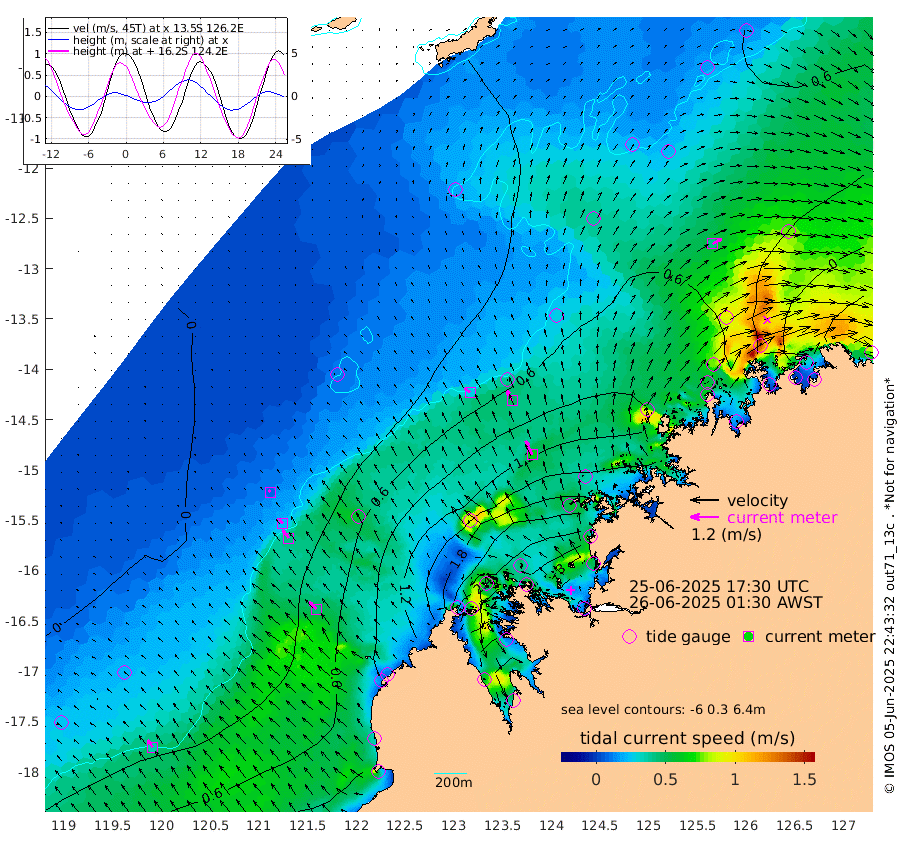 28cm/s -49T +10cm/s rms + 1cm/s 1T. NWSBRW 205m 36cm/s -38T +11cm/s rms + 6cm/s -110T. NWSROW 199m 65cm/s -26T +5cm/s rms + 2cm/s 65T. CAM050 58m 48cm/s -26T +12cm/s rms + 5cm/s 92T. CAM100 99m 9cm/s -40T +7cm/s rms + 1cm/s -85T. KIM400 396m 23cm/s -42T +9cm/s rms + 5cm/s -119T. KIM200 208m 42cm/s -38T +11cm/s rms + 5cm/s -147T. KIM100 99m 45cm/s -45T +8cm/s rms + 3cm/s -103T. KIM050 59m 42cm/s 61T +4cm/s rms + 2cm/s 23T. TIMORS88 91m 88cm Imperieuse Reef 2cm Mermaid Reef 57cm Broome 37cm Cape Baskerville 119cm Red Bluff 27cm Cape Boileau 1cm Scott Reef (WA) 32cm Ashmore Reef 209cm Karrakatta Bay 215cm Sunday Island 308cm Valentine Island 306cm Derby 293cm Port Usborne 191cm Bedford Islands 187cm Yampi Sound (Koolan Island) 184cm Macleay Island 94cm Adele Island -68cm Browse Island 276cm Shale Island 231cm Lizard Island 206cm Hall Point 126cm Degerando Island 72cm White Island 26cm Skua No. 4 Well 43cm Jabiru 44cm Maret Island 34cm Baudin Island 23cm Cape Voltaire (Krait Bay) 38cm Dillon Shoal 6cm Laminaria 31cm Port Warrender 2cm Troughton Island 25cm Cassini Island 2cm West Holothuria Reef Offshore -4cm Jar Island 34cm Lynher Bank 25cm Heywood Shoal 32cm Pee Shoal -4cm Van Cloon Shoal -53cm Carronade Island -56cm Guy Point -56cm Napier Broome Bay -100cm Lesueur Island