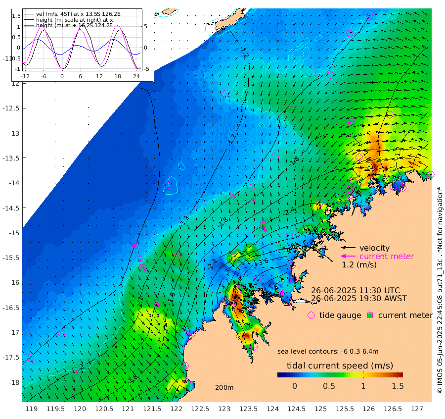 36cm/s 138T +10cm/s rms + 1cm/s 1T. NWSBRW 205m 39cm/s 151T +11cm/s rms + 6cm/s -110T. NWSROW 199m 62cm/s 158T +5cm/s rms + 2cm/s 65T. CAM050 58m 48cm/s 161T +12cm/s rms + 5cm/s 92T. CAM100 99m 10cm/s 156T +7cm/s rms + 1cm/s -85T. KIM400 396m 22cm/s 146T +9cm/s rms + 5cm/s -119T. KIM200 208m 44cm/s 152T +11cm/s rms + 5cm/s -147T. KIM100 99m 50cm/s 150T +8cm/s rms + 3cm/s -103T. KIM050 59m 46cm/s -126T +4cm/s rms + 2cm/s 23T. TIMORS88 91m -175cm Imperieuse Reef -87cm Mermaid Reef -200cm Broome -150cm Cape Baskerville -220cm Red Bluff -157cm Cape Boileau -87cm Scott Reef (WA) -138cm Ashmore Reef -331cm Karrakatta Bay -338cm Sunday Island -378cm Valentine Island -352cm Derby -373cm Port Usborne -321cm Bedford Islands -347cm Yampi Sound (Koolan Island) -352cm Macleay Island -224cm Adele Island -20cm Browse Island -449cm Shale Island -429cm Lizard Island -336cm Hall Point -279cm Degerando Island -223cm White Island -135cm Skua No. 4 Well -146cm Jabiru -190cm Maret Island -169cm Baudin Island -175cm Cape Voltaire (Krait Bay) -143cm Dillon Shoal -86cm Laminaria -204cm Port Warrender -160cm Troughton Island -173cm Cassini Island -135cm West Holothuria Reef Offshore -142cm Jar Island -145cm Lynher Bank -156cm Heywood Shoal -146cm Pee Shoal -122cm Van Cloon Shoal -91cm Carronade Island -92cm Guy Point -100cm Napier Broome Bay -46cm Lesueur Island
