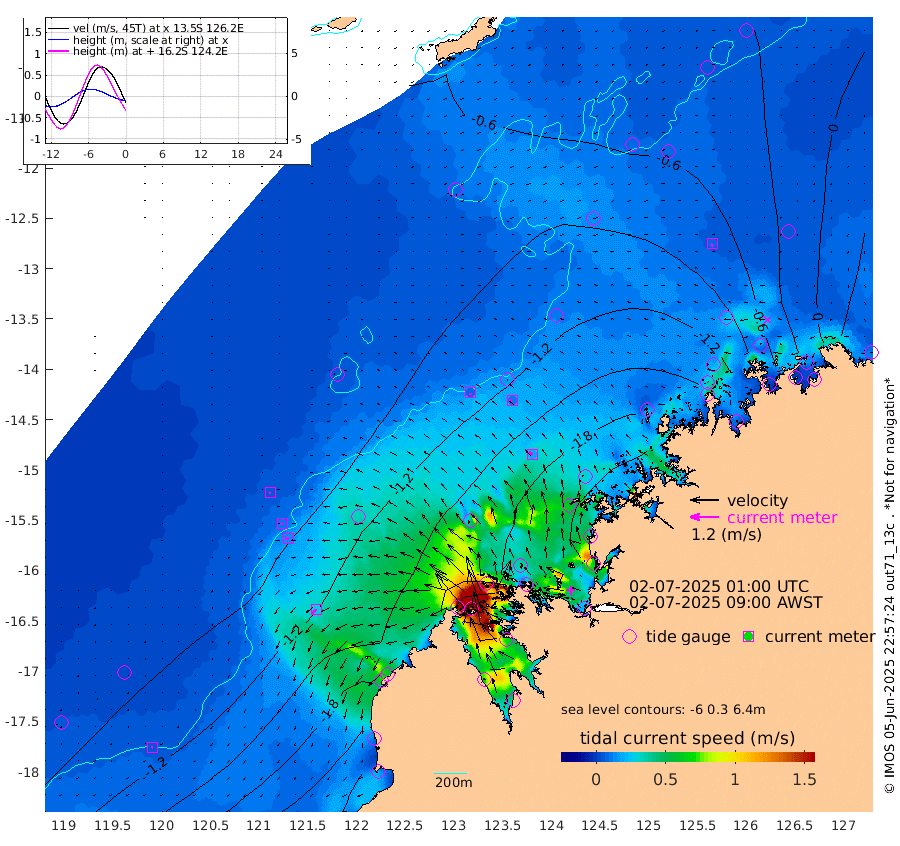 8cm/s 163T +10cm/s rms + 1cm/s 1T. NWSBRW 205m 4cm/s -108T +11cm/s rms + 6cm/s -110T. NWSROW 199m 19cm/s -50T +5cm/s rms + 2cm/s 65T. CAM050 58m 11cm/s -71T +12cm/s rms + 5cm/s 92T. CAM100 99m 5cm/s -116T +7cm/s rms + 1cm/s -85T. KIM400 396m 10cm/s -102T +9cm/s rms + 5cm/s -119T. KIM200 208m 15cm/s -98T +11cm/s rms + 5cm/s -147T. KIM100 99m 27cm/s -132T +8cm/s rms + 3cm/s -103T. KIM050 59m 9cm/s -151T +4cm/s rms + 2cm/s 23T. TIMORS88 91m -53cm Imperieuse Reef -82cm Mermaid Reef -223cm Broome -158cm Cape Baskerville -178cm Red Bluff -152cm Cape Boileau -70cm Scott Reef (WA) -72cm Ashmore Reef -166cm Karrakatta Bay -144cm Sunday Island 22cm Valentine Island 92cm Derby -17cm Port Usborne -190cm Bedford Islands -243cm Yampi Sound (Koolan Island) -254cm Macleay Island -166cm Adele Island -95cm Browse Island -285cm Shale Island -253cm Lizard Island -272cm Hall Point -215cm Degerando Island -216cm White Island -76cm Skua No. 4 Well -55cm Jabiru -160cm Maret Island -155cm Baudin Island -147cm Cape Voltaire (Krait Bay) -51cm Dillon Shoal -39cm Laminaria -161cm Port Warrender -69cm Troughton Island -126cm Cassini Island -91cm West Holothuria Reef Offshore -80cm Jar Island -117cm Lynher Bank -131cm Heywood Shoal -48cm Pee Shoal -24cm Van Cloon Shoal -34cm Carronade Island -39cm Guy Point -30cm Napier Broome Bay 53cm Lesueur Island