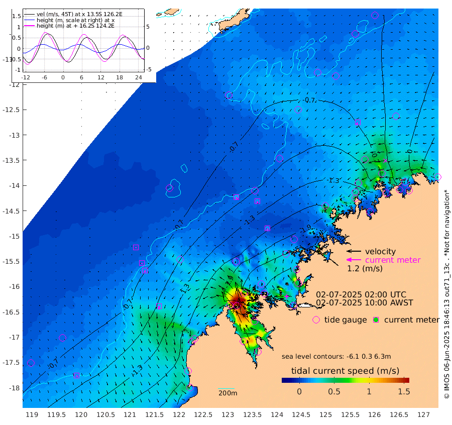19cm/s 143T +10cm/s rms + 1cm/s 1T. NWSBRW 205m 14cm/s 160T +11cm/s rms + 6cm/s -110T. NWSROW 199m 15cm/s 168T +5cm/s rms + 2cm/s 65T. CAM050 58m 15cm/s 167T +12cm/s rms + 5cm/s 92T. CAM100 99m 4cm/s -167T +7cm/s rms + 1cm/s -85T. KIM400 396m 7cm/s -169T +9cm/s rms + 5cm/s -119T. KIM200 208m 15cm/s -176T +11cm/s rms + 5cm/s -147T. KIM100 99m 25cm/s 178T +8cm/s rms + 3cm/s -103T. KIM050 59m 17cm/s -141T +4cm/s rms + 2cm/s 23T. TIMORS88 91m -74cm Imperieuse Reef -61cm Mermaid Reef -182cm Broome -124cm Cape Baskerville -153cm Red Bluff -118cm Cape Boileau -54cm Scott Reef (WA) -62cm Ashmore Reef -197cm Karrakatta Bay -194cm Sunday Island -125cm Valentine Island -77cm Derby -148cm Port Usborne -212cm Bedford Islands -255cm Yampi Sound (Koolan Island) -271cm Macleay Island -160cm Adele Island -49cm Browse Island -318cm Shale Island -288cm Lizard Island -221cm Hall Point -205cm Degerando Island -193cm White Island -65cm Skua No. 4 Well -46cm Jabiru -131cm Maret Island -123cm Baudin Island -118cm Cape Voltaire (Krait Bay) -54cm Dillon Shoal -29cm Laminaria -136cm Port Warrender -57cm Troughton Island -98cm Cassini Island -69cm West Holothuria Reef Offshore -61cm Jar Island -103cm Lynher Bank -103cm Heywood Shoal -46cm Pee Shoal -16cm Van Cloon Shoal -11cm Carronade Island -16cm Guy Point -4cm Napier Broome Bay 67cm Lesueur Island