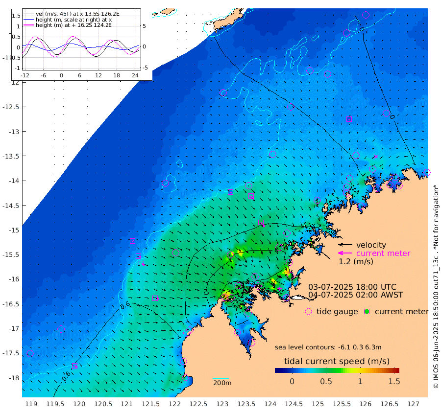 12cm/s 121T +10cm/s rms + 1cm/s 1T. NWSBRW 205m 20cm/s 136T +11cm/s rms + 6cm/s -110T. NWSROW 199m 49cm/s 141T +5cm/s rms + 2cm/s 65T. CAM050 58m 36cm/s 138T +12cm/s rms + 5cm/s 92T. CAM100 99m 7cm/s 114T +7cm/s rms + 1cm/s -85T. KIM400 396m 16cm/s 115T +9cm/s rms + 5cm/s -119T. KIM200 208m 31cm/s 124T +11cm/s rms + 5cm/s -147T. KIM100 99m 33cm/s 101T +8cm/s rms + 3cm/s -103T. KIM050 59m 5cm/s 178T +4cm/s rms + 2cm/s 23T. TIMORS88 91m -14cm Imperieuse Reef 55cm Mermaid Reef 99cm Broome 76cm Cape Baskerville 57cm Red Bluff 61cm Cape Boileau 43cm Scott Reef (WA) 40cm Ashmore Reef -15cm Karrakatta Bay -44cm Sunday Island -221cm Valentine Island -249cm Derby -173cm Port Usborne 8cm Bedford Islands 29cm Yampi Sound (Koolan Island) 12cm Macleay Island 40cm Adele Island 77cm Browse Island 12cm Shale Island -27cm Lizard Island 99cm Hall Point 55cm Degerando Island 70cm White Island 40cm Skua No. 4 Well 29cm Jabiru 73cm Maret Island 81cm Baudin Island 72cm Cape Voltaire (Krait Bay) 19cm Dillon Shoal 45cm Laminaria 59cm Port Warrender 42cm Troughton Island 71cm Cassini Island 54cm West Holothuria Reef Offshore 49cm Jar Island 48cm Lynher Bank 71cm Heywood Shoal 22cm Pee Shoal 20cm Van Cloon Shoal 45cm Carronade Island 47cm Guy Point 40cm Napier Broome Bay 30cm Lesueur Island