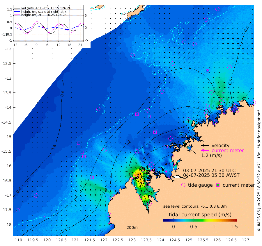 8cm/s -33T +10cm/s rms + 1cm/s 1T. NWSBRW 205m 14cm/s -19T +11cm/s rms + 6cm/s -110T. NWSROW 199m 17cm/s -9T +5cm/s rms + 2cm/s 65T. CAM050 58m 15cm/s -1T +12cm/s rms + 5cm/s 92T. CAM100 99m 4cm/s 20T +7cm/s rms + 1cm/s -85T. KIM400 396m 7cm/s 5T +9cm/s rms + 5cm/s -119T. KIM200 208m 15cm/s -2T +11cm/s rms + 5cm/s -147T. KIM100 99m 21cm/s -3T +8cm/s rms + 3cm/s -103T. KIM050 59m 12cm/s 42T +4cm/s rms + 2cm/s 23T. TIMORS88 91m 80cm Imperieuse Reef 68cm Mermaid Reef 140cm Broome 97cm Cape Baskerville 107cm Red Bluff 90cm Cape Boileau 63cm Scott Reef (WA) 81cm Ashmore Reef 156cm Karrakatta Bay 167cm Sunday Island 145cm Valentine Island 121cm Derby 159cm Port Usborne 166cm Bedford Islands 206cm Yampi Sound (Koolan Island) 223cm Macleay Island 142cm Adele Island 51cm Browse Island 250cm Shale Island 253cm Lizard Island 147cm Hall Point 161cm Degerando Island 162cm White Island 78cm Skua No. 4 Well 61cm Jabiru 122cm Maret Island 112cm Baudin Island 115cm Cape Voltaire (Krait Bay) 72cm Dillon Shoal 62cm Laminaria 133cm Port Warrender 96cm Troughton Island 105cm Cassini Island 91cm West Holothuria Reef Offshore 89cm Jar Island 101cm Lynher Bank 95cm Heywood Shoal 76cm Pee Shoal 60cm Van Cloon Shoal 61cm Carronade Island 62cm Guy Point 56cm Napier Broome Bay 26cm Lesueur Island