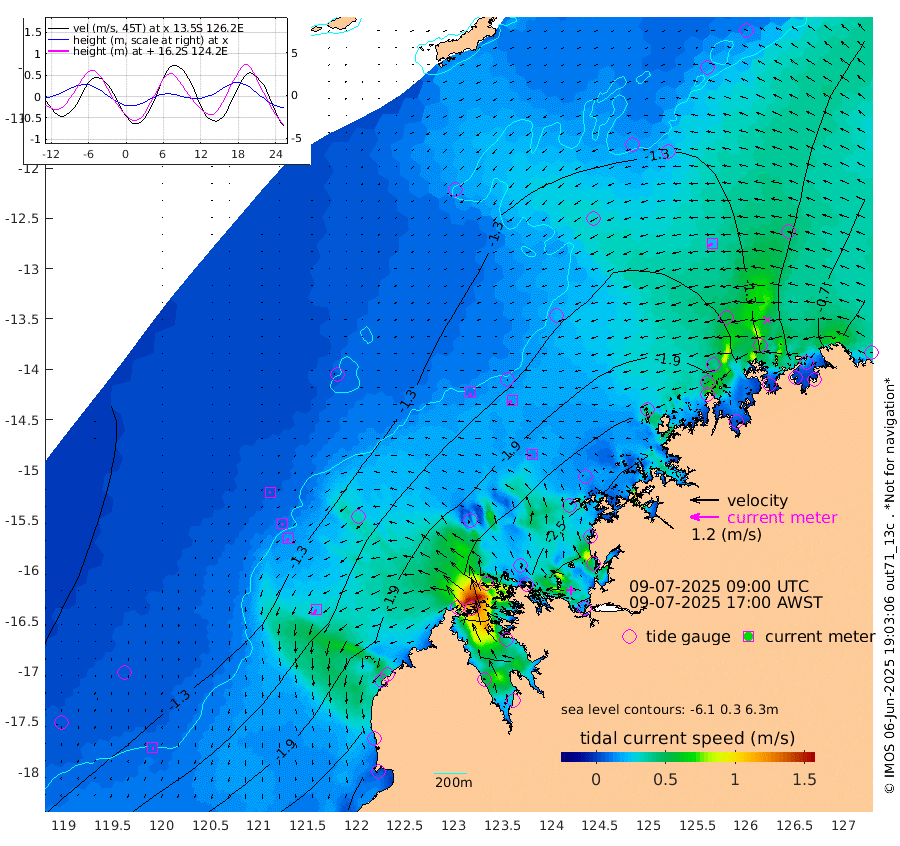 11cm/s 173T +10cm/s rms + 1cm/s 1T. NWSBRW 205m 8cm/s 178T +11cm/s rms + 6cm/s -110T. NWSROW 199m 15cm/s -108T +5cm/s rms + 2cm/s 65T. CAM050 58m 16cm/s -115T +12cm/s rms + 5cm/s 92T. CAM100 99m 5cm/s -128T +7cm/s rms + 1cm/s -85T. KIM400 396m 8cm/s -136T +9cm/s rms + 5cm/s -119T. KIM200 208m 15cm/s -141T +11cm/s rms + 5cm/s -147T. KIM100 99m 26cm/s -149T +8cm/s rms + 3cm/s -103T. KIM050 59m 21cm/s -110T +4cm/s rms + 2cm/s 23T. TIMORS88 91m -104cm Imperieuse Reef -111cm Mermaid Reef -219cm Broome -177cm Cape Baskerville -219cm Red Bluff -167cm Cape Boileau -103cm Scott Reef (WA) -133cm Ashmore Reef -222cm Karrakatta Bay -207cm Sunday Island -149cm Valentine Island -76cm Derby -133cm Port Usborne -233cm Bedford Islands -264cm Yampi Sound (Koolan Island) -299cm Macleay Island -212cm Adele Island -91cm Browse Island -303cm Shale Island -284cm Lizard Island -371cm Hall Point -230cm Degerando Island -218cm White Island -135cm Skua No. 4 Well -146cm Jabiru -201cm Maret Island -188cm Baudin Island -176cm Cape Voltaire (Krait Bay) -117cm Dillon Shoal -105cm Laminaria -201cm Port Warrender -148cm Troughton Island -179cm Cassini Island -148cm West Holothuria Reef Offshore -129cm Jar Island -142cm Lynher Bank -165cm Heywood Shoal -133cm Pee Shoal -102cm Van Cloon Shoal -93cm Carronade Island -98cm Guy Point -95cm Napier Broome Bay -34cm Lesueur Island