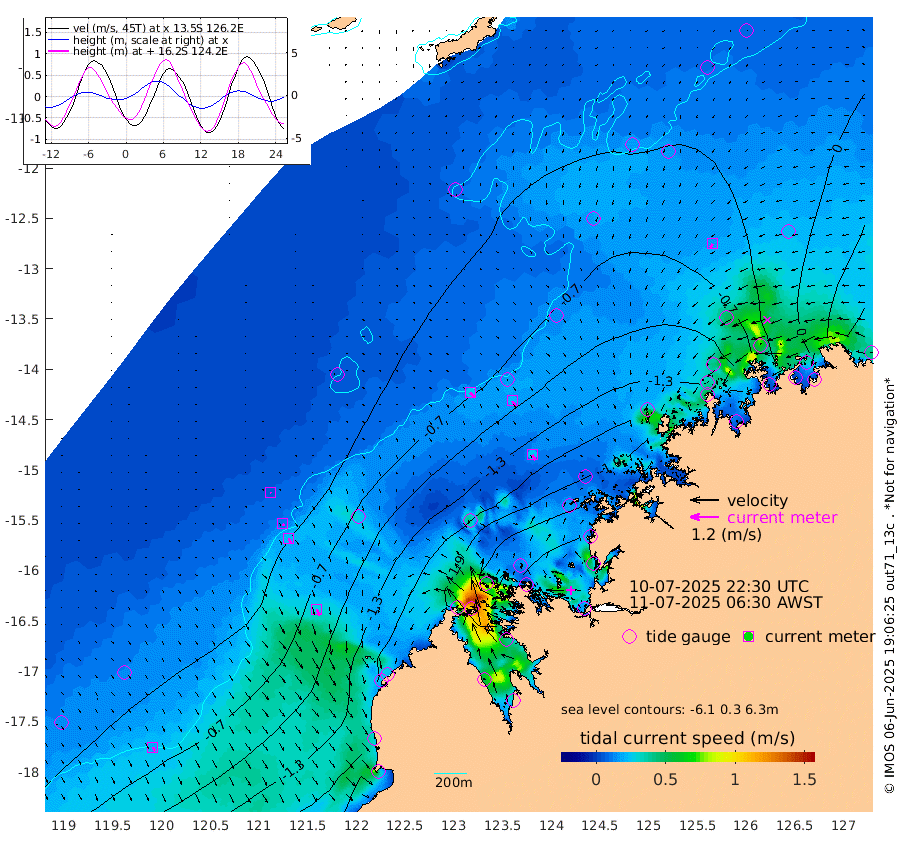 25cm/s 137T +10cm/s rms + 1cm/s 1T. NWSBRW 205m 19cm/s 149T +11cm/s rms + 6cm/s -110T. NWSROW 199m 25cm/s 147T +5cm/s rms + 2cm/s 65T. CAM050 58m 23cm/s 149T +12cm/s rms + 5cm/s 92T. CAM100 99m 5cm/s 152T +7cm/s rms + 1cm/s -85T. KIM400 396m 10cm/s 153T +9cm/s rms + 5cm/s -119T. KIM200 208m 22cm/s 157T +11cm/s rms + 5cm/s -147T. KIM100 99m 27cm/s 153T +8cm/s rms + 3cm/s -103T. KIM050 59m 17cm/s -148T +4cm/s rms + 2cm/s 23T. TIMORS88 91m -60cm Imperieuse Reef -18cm Mermaid Reef -144cm Broome -93cm Cape Baskerville -157cm Red Bluff -92cm Cape Boileau -15cm Scott Reef (WA) -33cm Ashmore Reef -196cm Karrakatta Bay -177cm Sunday Island -151cm Valentine Island -109cm Derby -157cm Port Usborne -188cm Bedford Islands -225cm Yampi Sound (Koolan Island) -254cm Macleay Island -137cm Adele Island -23cm Browse Island -294cm Shale Island -247cm Lizard Island -324cm Hall Point -179cm Degerando Island -151cm White Island -30cm Skua No. 4 Well -35cm Jabiru -102cm Maret Island -92cm Baudin Island -79cm Cape Voltaire (Krait Bay) -24cm Dillon Shoal 28cm Laminaria -100cm Port Warrender -22cm Troughton Island -71cm Cassini Island -35cm West Holothuria Reef Offshore -27cm Jar Island -56cm Lynher Bank -54cm Heywood Shoal -17cm Pee Shoal 9cm Van Cloon Shoal 27cm Carronade Island 32cm Guy Point 30cm Napier Broome Bay 114cm Lesueur Island
