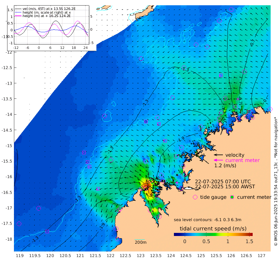 7cm/s -141T +10cm/s rms + 1cm/s 1T. NWSBRW 205m 6cm/s -143T +11cm/s rms + 6cm/s -110T. NWSROW 199m 21cm/s -80T +5cm/s rms + 2cm/s 65T. CAM050 58m 18cm/s -92T +12cm/s rms + 5cm/s 92T. CAM100 99m 6cm/s -109T +7cm/s rms + 1cm/s -85T. KIM400 396m 10cm/s -105T +9cm/s rms + 5cm/s -119T. KIM200 208m 16cm/s -110T +11cm/s rms + 5cm/s -147T. KIM100 99m 27cm/s -131T +8cm/s rms + 3cm/s -103T. KIM050 59m 18cm/s -95T +4cm/s rms + 2cm/s 23T. TIMORS88 91m -87cm Imperieuse Reef -111cm Mermaid Reef -200cm Broome -155cm Cape Baskerville -157cm Red Bluff -148cm Cape Boileau -109cm Scott Reef (WA) -122cm Ashmore Reef -179cm Karrakatta Bay -177cm Sunday Island -87cm Valentine Island -46cm Derby -109cm Port Usborne -208cm Bedford Islands -221cm Yampi Sound (Koolan Island) -274cm Macleay Island -191cm Adele Island -96cm Browse Island -247cm Shale Island -239cm Lizard Island -223cm Hall Point -197cm Degerando Island -182cm White Island -135cm Skua No. 4 Well -139cm Jabiru -179cm Maret Island -154cm Baudin Island -155cm Cape Voltaire (Krait Bay) -109cm Dillon Shoal -118cm Laminaria -152cm Port Warrender -120cm Troughton Island -155cm Cassini Island -122cm West Holothuria Reef Offshore -96cm Jar Island -138cm Lynher Bank -158cm Heywood Shoal -125cm Pee Shoal -79cm Van Cloon Shoal -65cm Carronade Island -75cm Guy Point -68cm Napier Broome Bay -4cm Lesueur Island