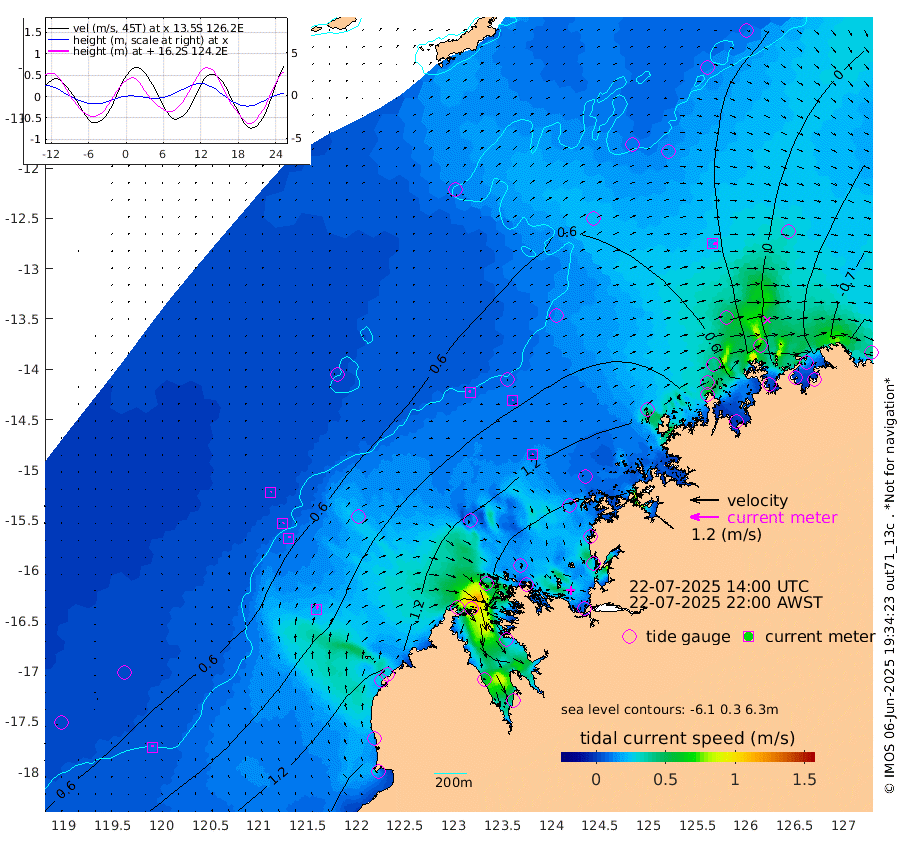 9cm/s -13T +10cm/s rms + 1cm/s 1T. NWSBRW 205m 8cm/s -7T +11cm/s rms + 6cm/s -110T. NWSROW 199m 5cm/s 61T +5cm/s rms + 2cm/s 65T. CAM050 58m 5cm/s 39T +12cm/s rms + 5cm/s 92T. CAM100 99m 3cm/s 56T +7cm/s rms + 1cm/s -85T. KIM400 396m 5cm/s 36T +9cm/s rms + 5cm/s -119T. KIM200 208m 9cm/s 27T +11cm/s rms + 5cm/s -147T. KIM100 99m 16cm/s 24T +8cm/s rms + 3cm/s -103T. KIM050 59m 18cm/s 83T +4cm/s rms + 2cm/s 23T. TIMORS88 91m 40cm Imperieuse Reef 41cm Mermaid Reef 128cm Broome 92cm Cape Baskerville 124cm Red Bluff 80cm Cape Boileau 41cm Scott Reef (WA) 45cm Ashmore Reef 144cm Karrakatta Bay 132cm Sunday Island 83cm Valentine Island 44cm Derby 95cm Port Usborne 164cm Bedford Islands 160cm Yampi Sound (Koolan Island) 214cm Macleay Island 125cm Adele Island 35cm Browse Island 197cm Shale Island 168cm Lizard Island 200cm Hall Point 133cm Degerando Island 105cm White Island 55cm Skua No. 4 Well 58cm Jabiru 95cm Maret Island 72cm Baudin Island 62cm Cape Voltaire (Krait Bay) 27cm Dillon Shoal 30cm Laminaria 52cm Port Warrender 7cm Troughton Island 62cm Cassini Island 27cm West Holothuria Reef Offshore -5cm Jar Island 64cm Lynher Bank 65cm Heywood Shoal 40cm Pee Shoal -17cm Van Cloon Shoal -49cm Carronade Island -47cm Guy Point -51cm Napier Broome Bay -133cm Lesueur Island