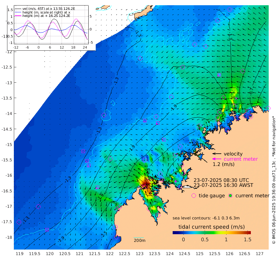 12cm/s 176T +10cm/s rms + 1cm/s 1T. NWSBRW 205m 10cm/s -177T +11cm/s rms + 6cm/s -110T. NWSROW 199m 18cm/s -101T +5cm/s rms + 2cm/s 65T. CAM050 58m 18cm/s -113T +12cm/s rms + 5cm/s 92T. CAM100 99m 6cm/s -126T +7cm/s rms + 1cm/s -85T. KIM400 396m 9cm/s -132T +9cm/s rms + 5cm/s -119T. KIM200 208m 17cm/s -139T +11cm/s rms + 5cm/s -147T. KIM100 99m 31cm/s -145T +8cm/s rms + 3cm/s -103T. KIM050 59m 25cm/s -110T +4cm/s rms + 2cm/s 23T. TIMORS88 91m -121cm Imperieuse Reef -128cm Mermaid Reef -252cm Broome -196cm Cape Baskerville -220cm Red Bluff -193cm Cape Boileau -126cm Scott Reef (WA) -151cm Ashmore Reef -247cm Karrakatta Bay -240cm Sunday Island -137cm Valentine Island -83cm Derby -158cm Port Usborne -276cm Bedford Islands -295cm Yampi Sound (Koolan Island) -344cm Macleay Island -241cm Adele Island -109cm Browse Island -338cm Shale Island -320cm Lizard Island -323cm Hall Point -265cm Degerando Island -235cm White Island -162cm Skua No. 4 Well -165cm Jabiru -227cm Maret Island -198cm Baudin Island -200cm Cape Voltaire (Krait Bay) -136cm Dillon Shoal -125cm Laminaria -208cm Port Warrender -159cm Troughton Island -201cm Cassini Island -156cm West Holothuria Reef Offshore -133cm Jar Island -168cm Lynher Bank -193cm Heywood Shoal -155cm Pee Shoal -109cm Van Cloon Shoal -93cm Carronade Island -100cm Guy Point -100cm Napier Broome Bay -21cm Lesueur Island