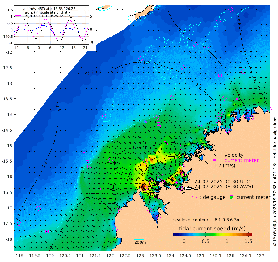 21cm/s 115T +10cm/s rms + 1cm/s 1T. NWSBRW 205m 26cm/s 129T +11cm/s rms + 6cm/s -110T. NWSROW 199m 65cm/s 137T +5cm/s rms + 2cm/s 65T. CAM050 58m 48cm/s 131T +12cm/s rms + 5cm/s 92T. CAM100 99m 12cm/s 107T +7cm/s rms + 1cm/s -85T. KIM400 396m 24cm/s 115T +9cm/s rms + 5cm/s -119T. KIM200 208m 40cm/s 118T +11cm/s rms + 5cm/s -147T. KIM100 99m 47cm/s 95T +8cm/s rms + 3cm/s -103T. KIM050 59m 17cm/s -130T +4cm/s rms + 2cm/s 23T. TIMORS88 91m 32cm Imperieuse Reef 123cm Mermaid Reef 189cm Broome 151cm Cape Baskerville 97cm Red Bluff 157cm Cape Boileau 119cm Scott Reef (WA) 112cm Ashmore Reef 41cm Karrakatta Bay 32cm Sunday Island -165cm Valentine Island -212cm Derby -125cm Port Usborne 82cm Bedford Islands 112cm Yampi Sound (Koolan Island) 152cm Macleay Island 139cm Adele Island 164cm Browse Island 74cm Shale Island 107cm Lizard Island 134cm Hall Point 134cm Degerando Island 164cm White Island 125cm Skua No. 4 Well 115cm Jabiru 172cm Maret Island 159cm Baudin Island 167cm Cape Voltaire (Krait Bay) 90cm Dillon Shoal 117cm Laminaria 167cm Port Warrender 143cm Troughton Island 160cm Cassini Island 145cm West Holothuria Reef Offshore 129cm Jar Island 133cm Lynher Bank 161cm Heywood Shoal 111cm Pee Shoal 103cm Van Cloon Shoal 136cm Carronade Island 147cm Guy Point 145cm Napier Broome Bay 111cm Lesueur Island