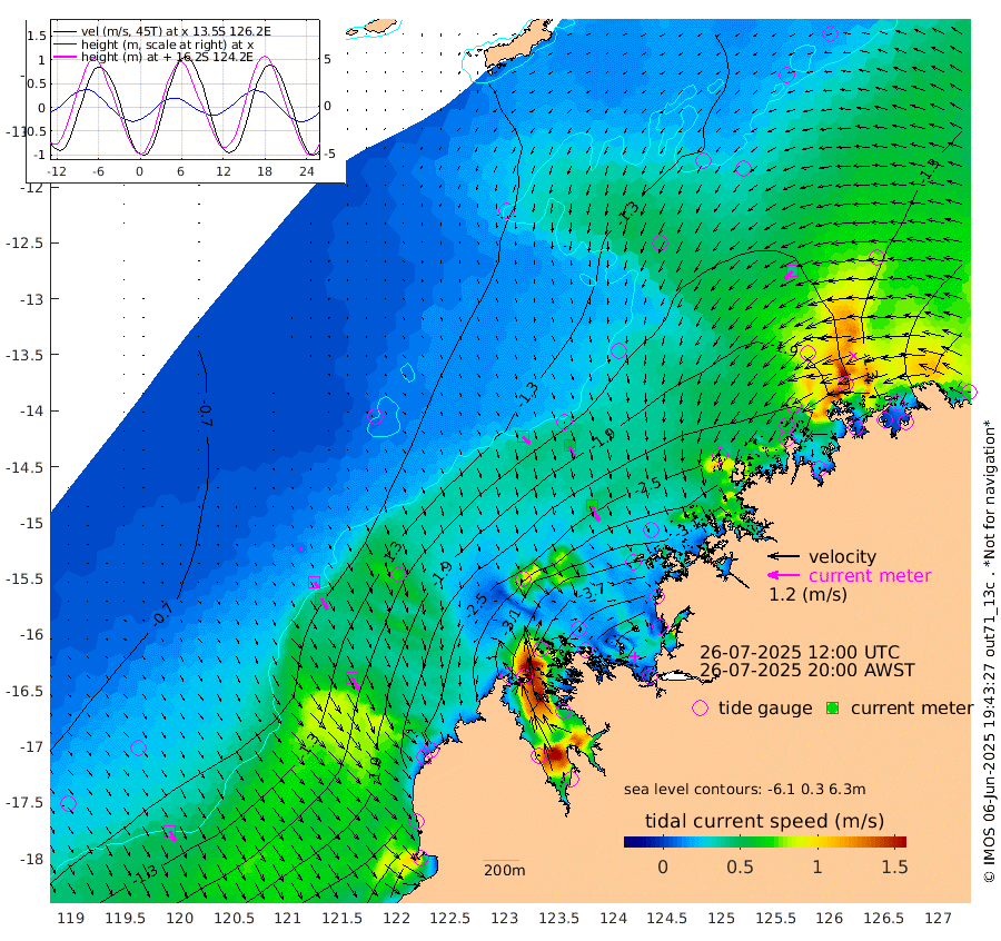 37cm/s 135T +10cm/s rms + 1cm/s 1T. NWSBRW 205m 42cm/s 152T +11cm/s rms + 6cm/s -110T. NWSROW 199m 63cm/s 155T +5cm/s rms + 2cm/s 65T. CAM050 58m 50cm/s 158T +12cm/s rms + 5cm/s 92T. CAM100 99m 10cm/s 155T +7cm/s rms + 1cm/s -85T. KIM400 396m 24cm/s 145T +9cm/s rms + 5cm/s -119T. KIM200 208m 47cm/s 151T +11cm/s rms + 5cm/s -147T. KIM100 99m 52cm/s 151T +8cm/s rms + 3cm/s -103T. KIM050 59m 42cm/s -132T +4cm/s rms + 2cm/s 23T. TIMORS88 91m -174cm Imperieuse Reef -83cm Mermaid Reef -217cm Broome -160cm Cape Baskerville -239cm Red Bluff -170cm Cape Boileau -81cm Scott Reef (WA) -128cm Ashmore Reef -344cm Karrakatta Bay -352cm Sunday Island -378cm Valentine Island -334cm Derby -369cm Port Usborne -343cm Bedford Islands -371cm Yampi Sound (Koolan Island) -370cm Macleay Island -232cm Adele Island -23cm Browse Island -476cm Shale Island -466cm Lizard Island -289cm Hall Point -299cm Degerando Island -242cm White Island -126cm Skua No. 4 Well -113cm Jabiru -194cm Maret Island -173cm Baudin Island -179cm Cape Voltaire (Krait Bay) -125cm Dillon Shoal -66cm Laminaria -217cm Port Warrender -150cm Troughton Island -172cm Cassini Island -129cm West Holothuria Reef Offshore -138cm Jar Island -149cm Lynher Bank -152cm Heywood Shoal -134cm Pee Shoal -111cm Van Cloon Shoal -80cm Carronade Island -79cm Guy Point -92cm Napier Broome Bay -24cm Lesueur Island