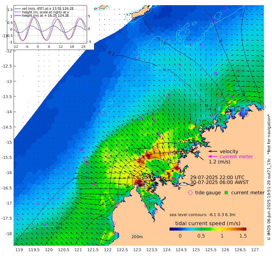 29cm/s -54T +10cm/s rms + 1cm/s 1T. NWSBRW 205m 33cm/s -45T +11cm/s rms + 6cm/s -110T. NWSROW 199m 86cm/s -35T +5cm/s rms + 2cm/s 65T. CAM050 58m 61cm/s -38T +12cm/s rms + 5cm/s 92T. CAM100 99m 12cm/s -67T +7cm/s rms + 1cm/s -85T. KIM400 396m 27cm/s -63T +9cm/s rms + 5cm/s -119T. KIM200 208m 51cm/s -53T +11cm/s rms + 5cm/s -147T. KIM100 99m 60cm/s -81T +8cm/s rms + 3cm/s -103T. KIM050 59m 18cm/s 43T +4cm/s rms + 2cm/s 23T. TIMORS88 91m 30cm Imperieuse Reef -89cm Mermaid Reef -198cm Broome -155cm Cape Baskerville -136cm Red Bluff -150cm Cape Boileau -77cm Scott Reef (WA) -59cm Ashmore Reef 0cm Karrakatta Bay 50cm Sunday Island 350cm Valentine Island 432cm Derby 297cm Port Usborne -41cm Bedford Islands -76cm Yampi Sound (Koolan Island) -94cm Macleay Island -102cm Adele Island -160cm Browse Island -35cm Shale Island -3cm Lizard Island -188cm Hall Point -119cm Degerando Island -145cm White Island -70cm Skua No. 4 Well -38cm Jabiru -144cm Maret Island -145cm Baudin Island -132cm Cape Voltaire (Krait Bay) -24cm Dillon Shoal -48cm Laminaria -125cm Port Warrender -59cm Troughton Island -126cm Cassini Island -93cm West Holothuria Reef Offshore -70cm Jar Island -87cm Lynher Bank -130cm Heywood Shoal -35cm Pee Shoal -24cm Van Cloon Shoal -59cm Carronade Island -65cm Guy Point -61cm Napier Broome Bay 9cm Lesueur Island