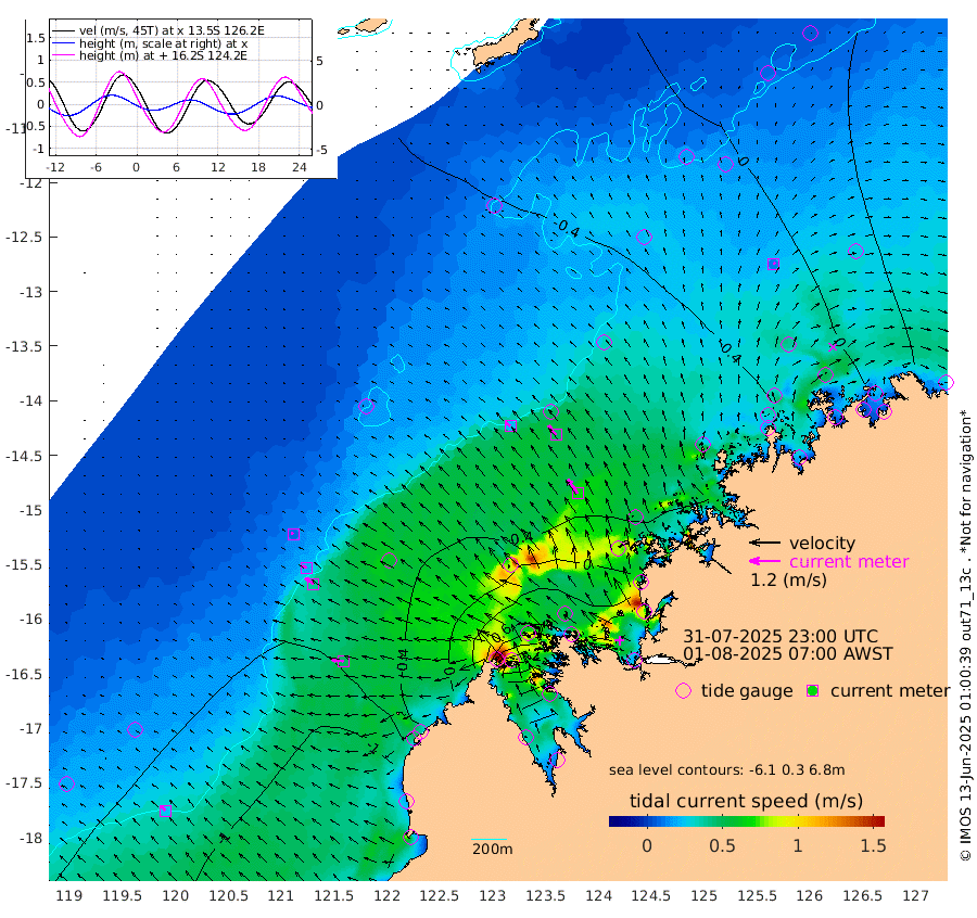 22cm/s -54T +10cm/s rms + 1cm/s 1T. NWSBRW 205m 25cm/s -45T +11cm/s rms + 6cm/s -110T. NWSROW 199m 67cm/s -35T +5cm/s rms + 2cm/s 65T. CAM050 58m 47cm/s -38T +12cm/s rms + 5cm/s 92T. CAM100 99m 9cm/s -66T +7cm/s rms + 1cm/s -85T. KIM400 396m 20cm/s -64T +9cm/s rms + 5cm/s -119T. KIM200 208m 39cm/s -53T +11cm/s rms + 5cm/s -147T. KIM100 99m 47cm/s -81T +8cm/s rms + 3cm/s -103T. KIM050 59m 11cm/s 29T +4cm/s rms + 2cm/s 23T. TIMORS88 91m 26cm Imperieuse Reef -64cm Mermaid Reef -154cm Broome -120cm Cape Baskerville -118cm Red Bluff -111cm Cape Boileau -51cm Scott Reef (WA) -38cm Ashmore Reef -3cm Karrakatta Bay 47cm Sunday Island 284cm Valentine Island 360cm Derby 246cm Port Usborne -35cm Bedford Islands -58cm Yampi Sound (Koolan Island) -53cm Macleay Island -68cm Adele Island -111cm Browse Island -34cm Shale Island -4cm Lizard Island -113cm Hall Point -92cm Degerando Island -106cm White Island -47cm Skua No. 4 Well -10cm Jabiru -105cm Maret Island -108cm Baudin Island -96cm Cape Voltaire (Krait Bay) -5cm Dillon Shoal -30cm Laminaria -86cm Port Warrender -31cm Troughton Island -92cm Cassini Island -59cm West Holothuria Reef Offshore -44cm Jar Island -61cm Lynher Bank -96cm Heywood Shoal -17cm Pee Shoal -5cm Van Cloon Shoal -29cm Carronade Island -31cm Guy Point -29cm Napier Broome Bay 27cm Lesueur Island