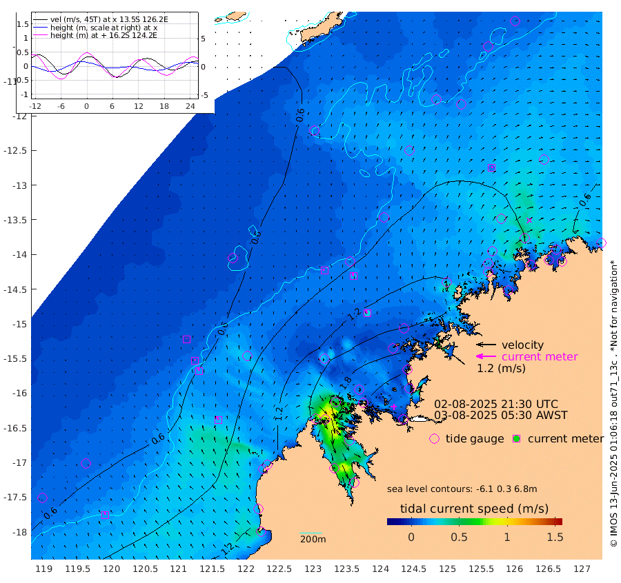 11cm/s -38T +10cm/s rms + 1cm/s 1T. NWSBRW 205m 16cm/s -27T +11cm/s rms + 6cm/s -110T. NWSROW 199m 27cm/s -23T +5cm/s rms + 2cm/s 65T. CAM050 58m 21cm/s -15T +12cm/s rms + 5cm/s 92T. CAM100 99m 4cm/s -7T +7cm/s rms + 1cm/s -85T. KIM400 396m 8cm/s -23T +9cm/s rms + 5cm/s -119T. KIM200 208m 18cm/s -21T +11cm/s rms + 5cm/s -147T. KIM100 99m 24cm/s -23T +8cm/s rms + 3cm/s -103T. KIM050 59m 11cm/s 28T +4cm/s rms + 2cm/s 23T. TIMORS88 91m 82cm Imperieuse Reef 53cm Mermaid Reef 103cm Broome 73cm Cape Baskerville 90cm Red Bluff 70cm Cape Boileau 47cm Scott Reef (WA) 72cm Ashmore Reef 155cm Karrakatta Bay 162cm Sunday Island 179cm Valentine Island 169cm Derby 180cm Port Usborne 138cm Bedford Islands 181cm Yampi Sound (Koolan Island) 187cm Macleay Island 115cm Adele Island 27cm Browse Island 228cm Shale Island 223cm Lizard Island 157cm Hall Point 131cm Degerando Island 136cm White Island 66cm Skua No. 4 Well 73cm Jabiru 96cm Maret Island 101cm Baudin Island 93cm Cape Voltaire (Krait Bay) 74cm Dillon Shoal 52cm Laminaria 112cm Port Warrender 95cm Troughton Island 89cm Cassini Island 84cm West Holothuria Reef Offshore 92cm Jar Island 79cm Lynher Bank 74cm Heywood Shoal 68cm Pee Shoal 68cm Van Cloon Shoal 67cm Carronade Island 68cm Guy Point 65cm Napier Broome Bay 57cm Lesueur Island