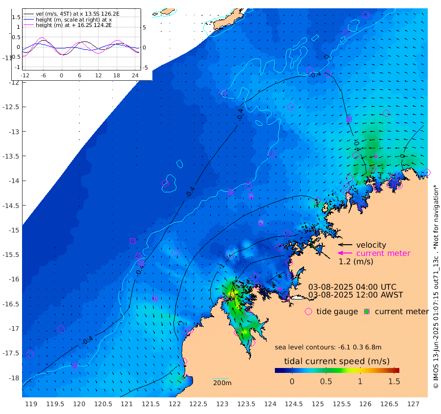11cm/s 147T +10cm/s rms + 1cm/s 1T. NWSBRW 205m 12cm/s 152T +11cm/s rms + 6cm/s -110T. NWSROW 199m 22cm/s 163T +5cm/s rms + 2cm/s 65T. CAM050 58m 16cm/s 167T +12cm/s rms + 5cm/s 92T. CAM100 99m 3cm/s -169T +7cm/s rms + 1cm/s -85T. KIM400 396m 5cm/s 160T +9cm/s rms + 5cm/s -119T. KIM200 208m 11cm/s 163T +11cm/s rms + 5cm/s -147T. KIM100 99m 17cm/s 154T +8cm/s rms + 3cm/s -103T. KIM050 59m 14cm/s -109T +4cm/s rms + 2cm/s 23T. TIMORS88 91m -49cm Imperieuse Reef -33cm Mermaid Reef -62cm Broome -49cm Cape Baskerville -73cm Red Bluff -34cm Cape Boileau -27cm Scott Reef (WA) -39cm Ashmore Reef -118cm Karrakatta Bay -122cm Sunday Island -164cm Valentine Island -142cm Derby -142cm Port Usborne -103cm Bedford Islands -126cm Yampi Sound (Koolan Island) -138cm Macleay Island -78cm Adele Island 3cm Browse Island -164cm Shale Island -151cm Lizard Island -126cm Hall Point -78cm Degerando Island -84cm White Island -38cm Skua No. 4 Well -52cm Jabiru -50cm Maret Island -57cm Baudin Island -39cm Cape Voltaire (Krait Bay) -42cm Dillon Shoal -42cm Laminaria -49cm Port Warrender -33cm Troughton Island -36cm Cassini Island -37cm West Holothuria Reef Offshore -30cm Jar Island -46cm Lynher Bank -43cm Heywood Shoal -35cm Pee Shoal -18cm Van Cloon Shoal -2cm Carronade Island -8cm Guy Point 6cm Napier Broome Bay 21cm Lesueur Island