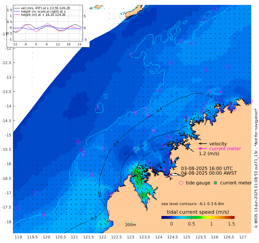 13cm/s 132T +10cm/s rms + 1cm/s 1T. NWSBRW 205m 13cm/s 151T +11cm/s rms + 6cm/s -110T. NWSROW 199m 23cm/s 138T +5cm/s rms + 2cm/s 65T. CAM050 58m 18cm/s 141T +12cm/s rms + 5cm/s 92T. CAM100 99m 3cm/s 146T +7cm/s rms + 1cm/s -85T. KIM400 396m 7cm/s 130T +9cm/s rms + 5cm/s -119T. KIM200 208m 16cm/s 139T +11cm/s rms + 5cm/s -147T. KIM100 99m 18cm/s 130T +8cm/s rms + 3cm/s -103T. KIM050 59m 11cm/s 116T +4cm/s rms + 2cm/s 23T. TIMORS88 91m -31cm Imperieuse Reef 0cm Mermaid Reef -30cm Broome -5cm Cape Baskerville -21cm Red Bluff -15cm Cape Boileau 0cm Scott Reef (WA) -11cm Ashmore Reef -73cm Karrakatta Bay -74cm Sunday Island -108cm Valentine Island -114cm Derby -114cm Port Usborne -46cm Bedford Islands -87cm Yampi Sound (Koolan Island) -99cm Macleay Island -41cm Adele Island -3cm Browse Island -121cm Shale Island -145cm Lizard Island -68cm Hall Point -48cm Degerando Island -57cm White Island -5cm Skua No. 4 Well 0cm Jabiru -24cm Maret Island -20cm Baudin Island -22cm Cape Voltaire (Krait Bay) -10cm Dillon Shoal 14cm Laminaria -31cm Port Warrender -15cm Troughton Island -13cm Cassini Island -14cm West Holothuria Reef Offshore -23cm Jar Island -16cm Lynher Bank -4cm Heywood Shoal -3cm Pee Shoal -6cm Van Cloon Shoal -6cm Carronade Island -1cm Guy Point -7cm Napier Broome Bay 15cm Lesueur Island