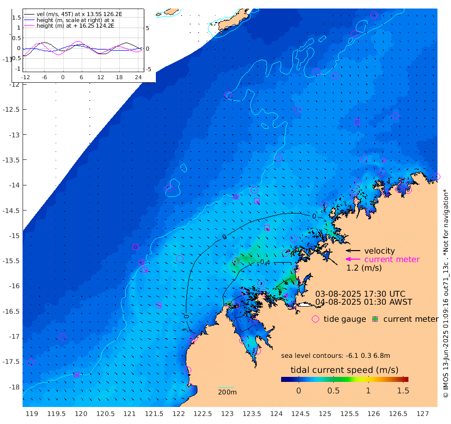 11cm/s 122T +10cm/s rms + 1cm/s 1T. NWSBRW 205m 14cm/s 138T +11cm/s rms + 6cm/s -110T. NWSROW 199m 32cm/s 137T +5cm/s rms + 2cm/s 65T. CAM050 58m 24cm/s 135T +12cm/s rms + 5cm/s 92T. CAM100 99m 4cm/s 120T +7cm/s rms + 1cm/s -85T. KIM400 396m 10cm/s 115T +9cm/s rms + 5cm/s -119T. KIM200 208m 20cm/s 126T +11cm/s rms + 5cm/s -147T. KIM100 99m 23cm/s 105T +8cm/s rms + 3cm/s -103T. KIM050 59m 7cm/s 115T +4cm/s rms + 2cm/s 23T. TIMORS88 91m -2cm Imperieuse Reef 38cm Mermaid Reef 52cm Broome 53cm Cape Baskerville 37cm Red Bluff 41cm Cape Boileau 31cm Scott Reef (WA) 29cm Ashmore Reef -18cm Karrakatta Bay -35cm Sunday Island -138cm Valentine Island -164cm Derby -122cm Port Usborne 11cm Bedford Islands -2cm Yampi Sound (Koolan Island) -34cm Macleay Island 12cm Adele Island 39cm Browse Island -22cm Shale Island -47cm Lizard Island -31cm Hall Point 29cm Degerando Island 24cm White Island 33cm Skua No. 4 Well 19cm Jabiru 42cm Maret Island 49cm Baudin Island 47cm Cape Voltaire (Krait Bay) 17cm Dillon Shoal 40cm Laminaria 39cm Port Warrender 39cm Troughton Island 51cm Cassini Island 37cm West Holothuria Reef Offshore 38cm Jar Island 32cm Lynher Bank 52cm Heywood Shoal 27cm Pee Shoal 29cm Van Cloon Shoal 42cm Carronade Island 45cm Guy Point 42cm Napier Broome Bay 55cm Lesueur Island