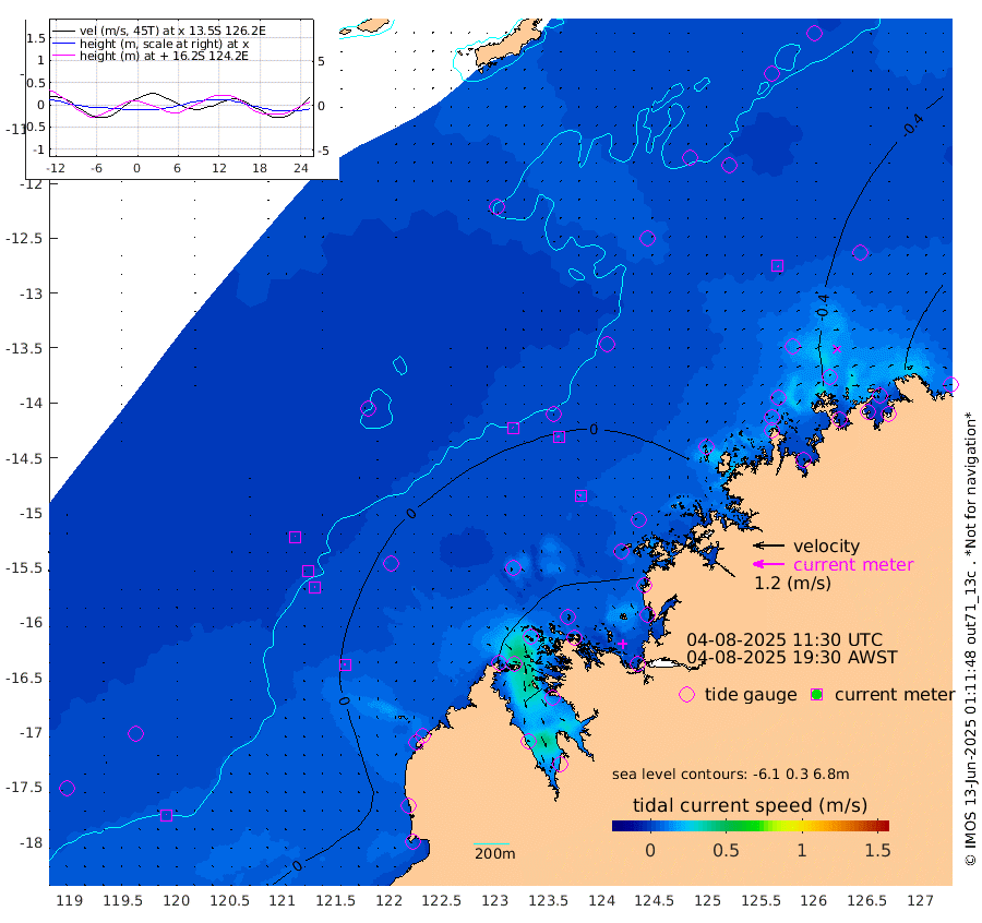 3cm/s -30T +10cm/s rms + 1cm/s 1T. NWSBRW 205m 3cm/s -45T +11cm/s rms + 6cm/s -110T. NWSROW 199m 7cm/s -33T +5cm/s rms + 2cm/s 65T. CAM050 58m 5cm/s -34T +12cm/s rms + 5cm/s 92T. CAM100 99m 1cm/s 84T +7cm/s rms + 1cm/s -85T. KIM400 396m 0cm/s -80T +9cm/s rms + 5cm/s -119T. KIM200 208m 3cm/s -47T +11cm/s rms + 5cm/s -147T. KIM100 99m 5cm/s -73T +8cm/s rms + 3cm/s -103T. KIM050 59m 5cm/s 129T +4cm/s rms + 2cm/s 23T. TIMORS88 91m -15cm Imperieuse Reef -15cm Mermaid Reef -15cm Broome -20cm Cape Baskerville -1cm Red Bluff -26cm Cape Boileau -15cm Scott Reef (WA) -22cm Ashmore Reef 13cm Karrakatta Bay 15cm Sunday Island 61cm Valentine Island 56cm Derby 46cm Port Usborne -1cm Bedford Islands 8cm Yampi Sound (Koolan Island) 43cm Macleay Island 4cm Adele Island -21cm Browse Island 21cm Shale Island 32cm Lizard Island 63cm Hall Point -18cm Degerando Island -8cm White Island -19cm Skua No. 4 Well -7cm Jabiru -24cm Maret Island -32cm Baudin Island -38cm Cape Voltaire (Krait Bay) -21cm Dillon Shoal -12cm Laminaria -45cm Port Warrender -57cm Troughton Island -42cm Cassini Island -36cm West Holothuria Reef Offshore -56cm Jar Island -18cm Lynher Bank -26cm Heywood Shoal -25cm Pee Shoal -52cm Van Cloon Shoal -70cm Carronade Island -68cm Guy Point -77cm Napier Broome Bay -112cm Lesueur Island