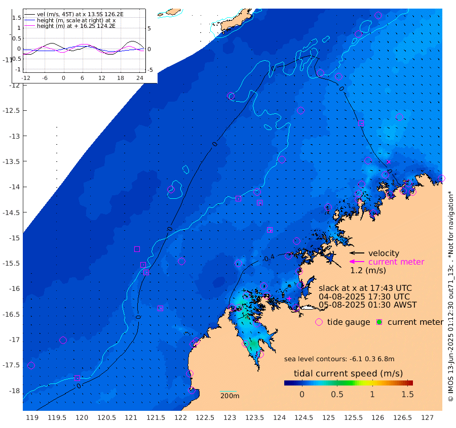 6cm/s 123T +10cm/s rms + 1cm/s 1T. NWSBRW 205m 6cm/s 145T +11cm/s rms + 6cm/s -110T. NWSROW 199m 13cm/s 127T +5cm/s rms + 2cm/s 65T. CAM050 58m 10cm/s 130T +12cm/s rms + 5cm/s 92T. CAM100 99m 1cm/s 135T +7cm/s rms + 1cm/s -85T. KIM400 396m 3cm/s 111T +9cm/s rms + 5cm/s -119T. KIM200 208m 8cm/s 127T +11cm/s rms + 5cm/s -147T. KIM100 99m 10cm/s 111T +8cm/s rms + 3cm/s -103T. KIM050 59m 11cm/s 92T +4cm/s rms + 2cm/s 23T. TIMORS88 91m 0cm Imperieuse Reef 17cm Mermaid Reef 10cm Broome 20cm Cape Baskerville 15cm Red Bluff 12cm Cape Boileau 14cm Scott Reef (WA) 11cm Ashmore Reef -22cm Karrakatta Bay -23cm Sunday Island -64cm Valentine Island -78cm Derby -65cm Port Usborne 5cm Bedford Islands -19cm Yampi Sound (Koolan Island) -55cm Macleay Island -10cm Adele Island 1cm Browse Island -34cm Shale Island -46cm Lizard Island -63cm Hall Point 4cm Degerando Island -7cm White Island 14cm Skua No. 4 Well 7cm Jabiru 9cm Maret Island 12cm Baudin Island 16cm Cape Voltaire (Krait Bay) 8cm Dillon Shoal 26cm Laminaria 14cm Port Warrender 18cm Troughton Island 18cm Cassini Island 12cm West Holothuria Reef Offshore 15cm Jar Island 13cm Lynher Bank 25cm Heywood Shoal 16cm Pee Shoal 19cm Van Cloon Shoal 23cm Carronade Island 26cm Guy Point 23cm Napier Broome Bay 44cm Lesueur Island