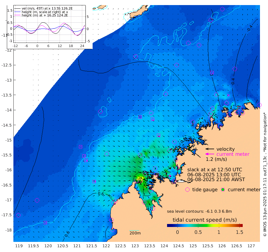 7cm/s 102T +10cm/s rms + 1cm/s 1T. NWSBRW 205m 10cm/s 127T +11cm/s rms + 6cm/s -110T. NWSROW 199m 27cm/s 142T +5cm/s rms + 2cm/s 65T. CAM050 58m 20cm/s 137T +12cm/s rms + 5cm/s 92T. CAM100 99m 6cm/s 106T +7cm/s rms + 1cm/s -85T. KIM400 396m 11cm/s 114T +9cm/s rms + 5cm/s -119T. KIM200 208m 17cm/s 119T +11cm/s rms + 5cm/s -147T. KIM100 99m 19cm/s 97T +8cm/s rms + 3cm/s -103T. KIM050 59m 9cm/s 141T +4cm/s rms + 2cm/s 23T. TIMORS88 91m -15cm Imperieuse Reef 28cm Mermaid Reef 75cm Broome 49cm Cape Baskerville 59cm Red Bluff 38cm Cape Boileau 26cm Scott Reef (WA) 18cm Ashmore Reef 28cm Karrakatta Bay 12cm Sunday Island -62cm Valentine Island -89cm Derby -44cm Port Usborne 38cm Bedford Islands 53cm Yampi Sound (Koolan Island) 107cm Macleay Island 65cm Adele Island 49cm Browse Island 53cm Shale Island 43cm Lizard Island 162cm Hall Point 46cm Degerando Island 54cm White Island 26cm Skua No. 4 Well 31cm Jabiru 50cm Maret Island 33cm Baudin Island 26cm Cape Voltaire (Krait Bay) 2cm Dillon Shoal 22cm Laminaria 10cm Port Warrender -19cm Troughton Island 27cm Cassini Island 11cm West Holothuria Reef Offshore -23cm Jar Island 28cm Lynher Bank 35cm Heywood Shoal 9cm Pee Shoal -32cm Van Cloon Shoal -43cm Carronade Island -42cm Guy Point -48cm Napier Broome Bay -114cm Lesueur Island