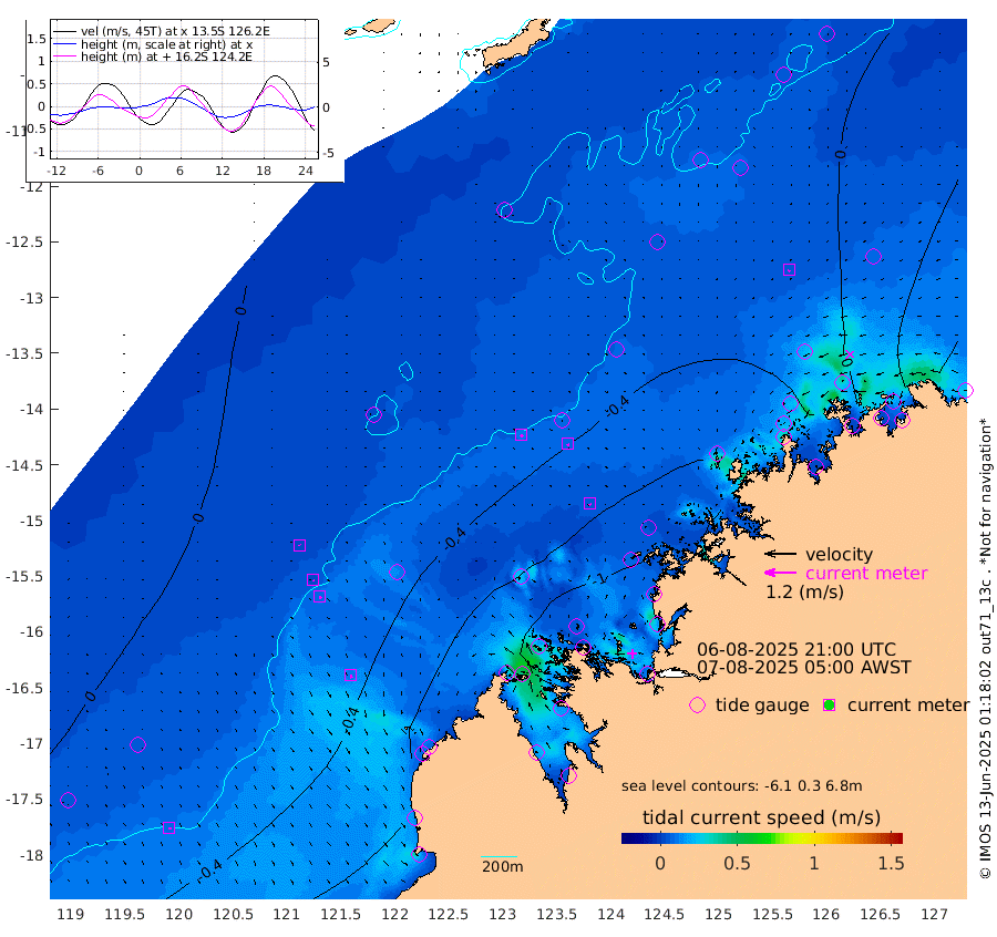 10cm/s 137T +10cm/s rms + 1cm/s 1T. NWSBRW 205m 7cm/s 148T +11cm/s rms + 6cm/s -110T. NWSROW 199m 6cm/s 140T +5cm/s rms + 2cm/s 65T. CAM050 58m 8cm/s 141T +12cm/s rms + 5cm/s 92T. CAM100 99m 2cm/s 154T +7cm/s rms + 1cm/s -85T. KIM400 396m 4cm/s 159T +9cm/s rms + 5cm/s -119T. KIM200 208m 9cm/s 160T +11cm/s rms + 5cm/s -147T. KIM100 99m 11cm/s 159T +8cm/s rms + 3cm/s -103T. KIM050 59m 6cm/s -148T +4cm/s rms + 2cm/s 23T. TIMORS88 91m -13cm Imperieuse Reef 1cm Mermaid Reef -69cm Broome -43cm Cape Baskerville -80cm Red Bluff -45cm Cape Boileau -1cm Scott Reef (WA) -5cm Ashmore Reef -87cm Karrakatta Bay -79cm Sunday Island -57cm Valentine Island -36cm Derby -61cm Port Usborne -87cm Bedford Islands -101cm Yampi Sound (Koolan Island) -142cm Macleay Island -73cm Adele Island -17cm Browse Island -128cm Shale Island -91cm Lizard Island -194cm Hall Point -83cm Degerando Island -68cm White Island -4cm Skua No. 4 Well -3cm Jabiru -46cm Maret Island -36cm Baudin Island -27cm Cape Voltaire (Krait Bay) -2cm Dillon Shoal 31cm Laminaria -39cm Port Warrender 11cm Troughton Island -26cm Cassini Island -7cm West Holothuria Reef Offshore 10cm Jar Island -18cm Lynher Bank -16cm Heywood Shoal 3cm Pee Shoal 25cm Van Cloon Shoal 37cm Carronade Island 40cm Guy Point 41cm Napier Broome Bay 102cm Lesueur Island