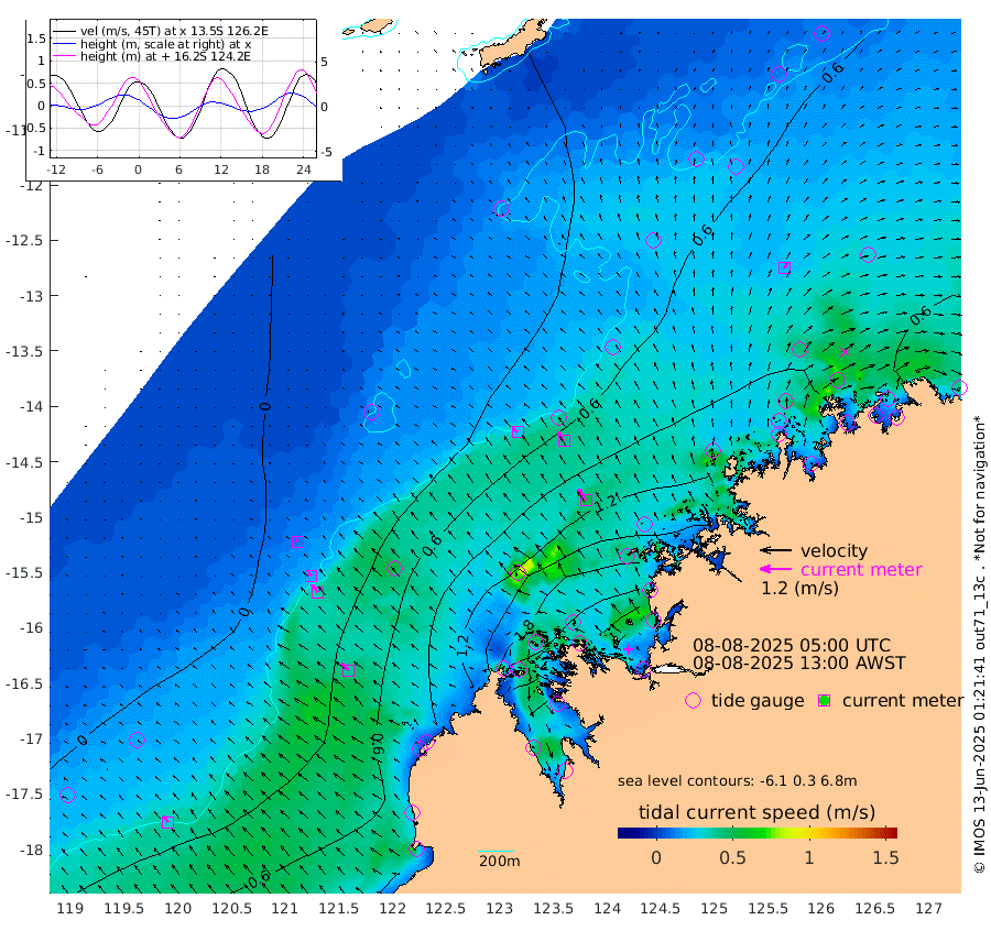 24cm/s -55T +10cm/s rms + 1cm/s 1T. NWSBRW 205m 30cm/s -38T +11cm/s rms + 6cm/s -110T. NWSROW 199m 53cm/s -33T +5cm/s rms + 2cm/s 65T. CAM050 58m 42cm/s -33T +12cm/s rms + 5cm/s 92T. CAM100 99m 10cm/s -49T +7cm/s rms + 1cm/s -85T. KIM400 396m 21cm/s -46T +9cm/s rms + 5cm/s -119T. KIM200 208m 38cm/s -40T +11cm/s rms + 5cm/s -147T. KIM100 99m 40cm/s -45T +8cm/s rms + 3cm/s -103T. KIM050 59m 21cm/s 20T +4cm/s rms + 2cm/s 23T. TIMORS88 91m 83cm Imperieuse Reef 2cm Mermaid Reef 72cm Broome 56cm Cape Baskerville 117cm Red Bluff 66cm Cape Boileau 3cm Scott Reef (WA) 34cm Ashmore Reef 182cm Karrakatta Bay 182cm Sunday Island 265cm Valentine Island 238cm Derby 227cm Port Usborne 158cm Bedford Islands 179cm Yampi Sound (Koolan Island) 178cm Macleay Island 95cm Adele Island -19cm Browse Island 243cm Shale Island 210cm Lizard Island 184cm Hall Point 136cm Degerando Island 105cm White Island 25cm Skua No. 4 Well 19cm Jabiru 67cm Maret Island 70cm Baudin Island 63cm Cape Voltaire (Krait Bay) 46cm Dillon Shoal -27cm Laminaria 108cm Port Warrender 62cm Troughton Island 62cm Cassini Island 46cm West Holothuria Reef Offshore 61cm Jar Island 37cm Lynher Bank 36cm Heywood Shoal 36cm Pee Shoal 44cm Van Cloon Shoal 31cm Carronade Island 28cm Guy Point 33cm Napier Broome Bay 10cm Lesueur Island