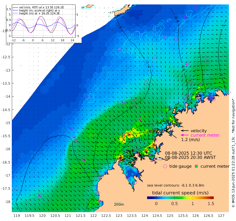 24cm/s 125T +10cm/s rms + 1cm/s 1T. NWSBRW 205m 33cm/s 141T +11cm/s rms + 6cm/s -110T. NWSROW 199m 70cm/s 144T +5cm/s rms + 2cm/s 65T. CAM050 58m 50cm/s 144T +12cm/s rms + 5cm/s 92T. CAM100 99m 12cm/s 123T +7cm/s rms + 1cm/s -85T. KIM400 396m 25cm/s 125T +9cm/s rms + 5cm/s -119T. KIM200 208m 44cm/s 131T +11cm/s rms + 5cm/s -147T. KIM100 99m 46cm/s 118T +8cm/s rms + 3cm/s -103T. KIM050 59m 24cm/s -143T +4cm/s rms + 2cm/s 23T. TIMORS88 91m -75cm Imperieuse Reef 23cm Mermaid Reef 43cm Broome 26cm Cape Baskerville -26cm Red Bluff 11cm Cape Boileau 20cm Scott Reef (WA) -9cm Ashmore Reef -100cm Karrakatta Bay -131cm Sunday Island -301cm Valentine Island -319cm Derby -245cm Port Usborne -69cm Bedford Islands -70cm Yampi Sound (Koolan Island) -24cm Macleay Island -5cm Adele Island 86cm Browse Island -117cm Shale Island -127cm Lizard Island -5cm Hall Point -32cm Degerando Island -7cm White Island 4cm Skua No. 4 Well -6cm Jabiru 17cm Maret Island 9cm Baudin Island 1cm Cape Voltaire (Krait Bay) -39cm Dillon Shoal 13cm Laminaria -42cm Port Warrender -42cm Troughton Island 2cm Cassini Island -12cm West Holothuria Reef Offshore -41cm Jar Island 3cm Lynher Bank 9cm Heywood Shoal -26cm Pee Shoal -55cm Van Cloon Shoal -41cm Carronade Island -41cm Guy Point -48cm Napier Broome Bay -82cm Lesueur Island