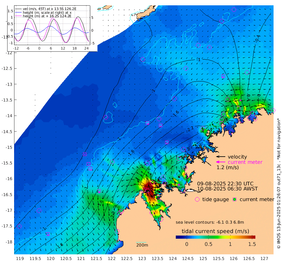 23cm/s 143T +10cm/s rms + 1cm/s 1T. NWSBRW 205m 18cm/s 158T +11cm/s rms + 6cm/s -110T. NWSROW 199m 14cm/s 169T +5cm/s rms + 2cm/s 65T. CAM050 58m 16cm/s 171T +12cm/s rms + 5cm/s 92T. CAM100 99m 5cm/s 179T +7cm/s rms + 1cm/s -85T. KIM400 396m 10cm/s -178T +9cm/s rms + 5cm/s -119T. KIM200 208m 21cm/s -179T +11cm/s rms + 5cm/s -147T. KIM100 99m 32cm/s 180T +8cm/s rms + 3cm/s -103T. KIM050 59m 19cm/s -140T +4cm/s rms + 2cm/s 23T. TIMORS88 91m -100cm Imperieuse Reef -71cm Mermaid Reef -254cm Broome -183cm Cape Baskerville -247cm Red Bluff -173cm Cape Boileau -63cm Scott Reef (WA) -92cm Ashmore Reef -280cm Karrakatta Bay -240cm Sunday Island -160cm Valentine Island -72cm Derby -168cm Port Usborne -288cm Bedford Islands -335cm Yampi Sound (Koolan Island) -372cm Macleay Island -225cm Adele Island -80cm Browse Island -416cm Shale Island -352cm Lizard Island -366cm Hall Point -283cm Degerando Island -248cm White Island -95cm Skua No. 4 Well -66cm Jabiru -198cm Maret Island -183cm Baudin Island -168cm Cape Voltaire (Krait Bay) -68cm Dillon Shoal -16cm Laminaria -192cm Port Warrender -95cm Troughton Island -163cm Cassini Island -102cm West Holothuria Reef Offshore -91cm Jar Island -121cm Lynher Bank -133cm Heywood Shoal -74cm Pee Shoal -33cm Van Cloon Shoal -18cm Carronade Island -14cm Guy Point -13cm Napier Broome Bay 90cm Lesueur Island