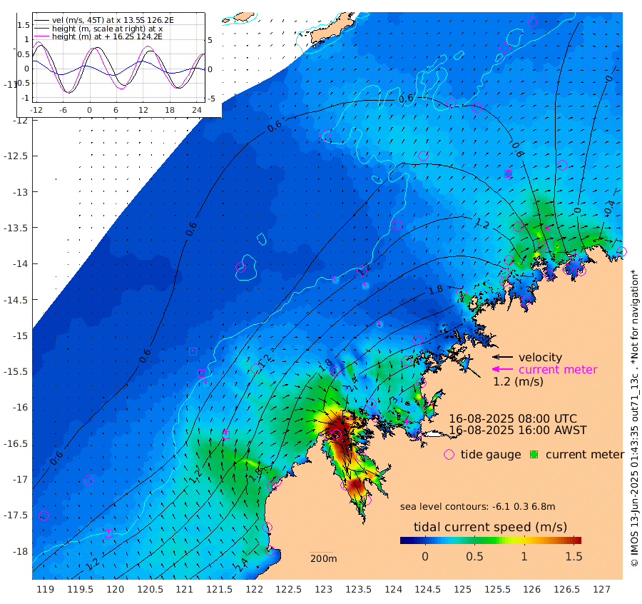 18cm/s -38T +10cm/s rms + 1cm/s 1T. NWSBRW 205m 20cm/s -20T +11cm/s rms + 6cm/s -110T. NWSROW 199m 20cm/s -29T +5cm/s rms + 2cm/s 65T. CAM050 58m 19cm/s -18T +12cm/s rms + 5cm/s 92T. CAM100 99m 5cm/s 11T +7cm/s rms + 1cm/s -85T. KIM400 396m 9cm/s -6T +9cm/s rms + 5cm/s -119T. KIM200 208m 19cm/s -13T +11cm/s rms + 5cm/s -147T. KIM100 99m 31cm/s -3T +8cm/s rms + 3cm/s -103T. KIM050 59m 12cm/s 40T +4cm/s rms + 2cm/s 23T. TIMORS88 91m 90cm Imperieuse Reef 64cm Mermaid Reef 214cm Broome 135cm Cape Baskerville 184cm Red Bluff 140cm Cape Boileau 57cm Scott Reef (WA) 69cm Ashmore Reef 235cm Karrakatta Bay 224cm Sunday Island 125cm Valentine Island 71cm Derby 164cm Port Usborne 252cm Bedford Islands 298cm Yampi Sound (Koolan Island) 299cm Macleay Island 176cm Adele Island 52cm Browse Island 375cm Shale Island 384cm Lizard Island 178cm Hall Point 237cm Degerando Island 215cm White Island 72cm Skua No. 4 Well 27cm Jabiru 152cm Maret Island 131cm Baudin Island 134cm Cape Voltaire (Krait Bay) 39cm Dillon Shoal 22cm Laminaria 142cm Port Warrender 49cm Troughton Island 107cm Cassini Island 63cm West Holothuria Reef Offshore 61cm Jar Island 118cm Lynher Bank 113cm Heywood Shoal 48cm Pee Shoal 11cm Van Cloon Shoal -2cm Carronade Island -4cm Guy Point -1cm Napier Broome Bay -101cm Lesueur Island