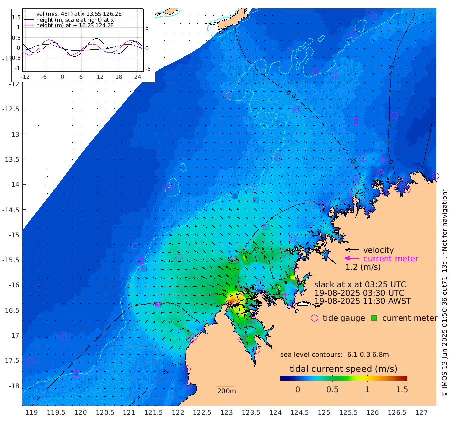 8cm/s -86T +10cm/s rms + 1cm/s 1T. NWSBRW 205m 10cm/s -63T +11cm/s rms + 6cm/s -110T. NWSROW 199m 24cm/s -50T +5cm/s rms + 2cm/s 65T. CAM050 58m 19cm/s -59T +12cm/s rms + 5cm/s 92T. CAM100 99m 6cm/s -81T +7cm/s rms + 1cm/s -85T. KIM400 396m 12cm/s -71T +9cm/s rms + 5cm/s -119T. KIM200 208m 18cm/s -65T +11cm/s rms + 5cm/s -147T. KIM100 99m 21cm/s -98T +8cm/s rms + 3cm/s -103T. KIM050 59m 8cm/s -50T +4cm/s rms + 2cm/s 23T. TIMORS88 91m -16cm Imperieuse Reef -61cm Mermaid Reef -101cm Broome -71cm Cape Baskerville -57cm Red Bluff -63cm Cape Boileau -54cm Scott Reef (WA) -43cm Ashmore Reef -47cm Karrakatta Bay -54cm Sunday Island 55cm Valentine Island 77cm Derby 22cm Port Usborne -75cm Bedford Islands -92cm Yampi Sound (Koolan Island) -93cm Macleay Island -71cm Adele Island -51cm Browse Island -94cm Shale Island -114cm Lizard Island -63cm Hall Point -78cm Degerando Island -95cm White Island -48cm Skua No. 4 Well -48cm Jabiru -70cm Maret Island -66cm Baudin Island -64cm Cape Voltaire (Krait Bay) -26cm Dillon Shoal -64cm Laminaria -54cm Port Warrender -24cm Troughton Island -48cm Cassini Island -43cm West Holothuria Reef Offshore -29cm Jar Island -73cm Lynher Bank -73cm Heywood Shoal -31cm Pee Shoal -12cm Van Cloon Shoal -15cm Carronade Island -23cm Guy Point -12cm Napier Broome Bay 19cm Lesueur Island