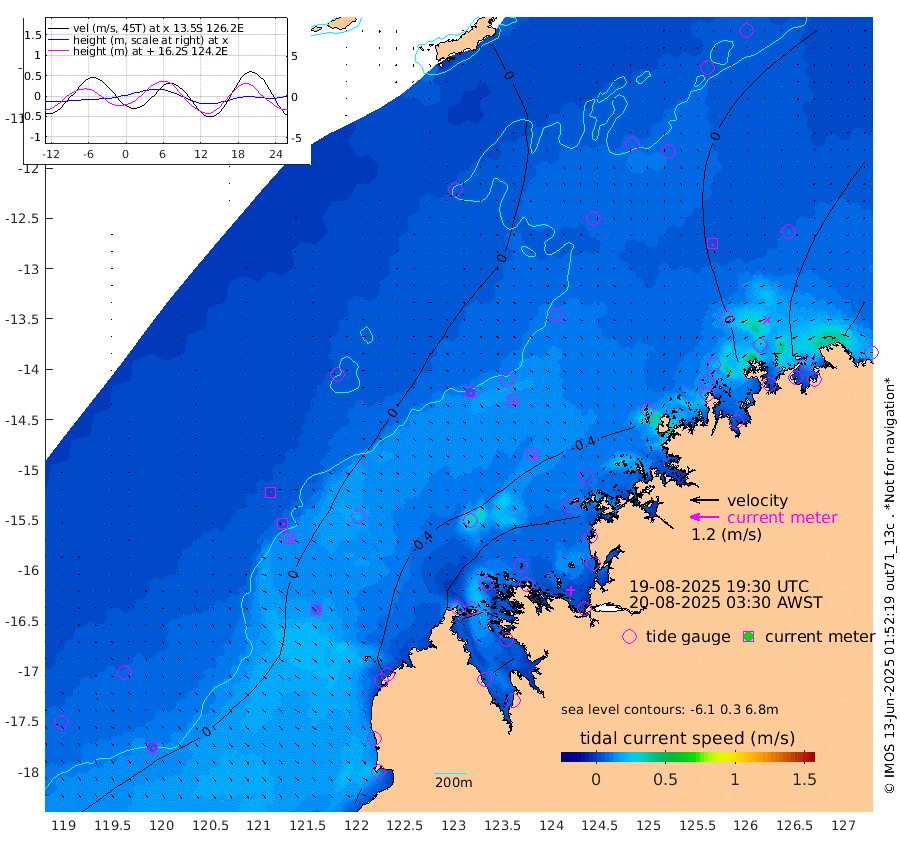 10cm/s 130T +10cm/s rms + 1cm/s 1T. NWSBRW 205m 9cm/s 141T +11cm/s rms + 6cm/s -110T. NWSROW 199m 14cm/s 139T +5cm/s rms + 2cm/s 65T. CAM050 58m 13cm/s 136T +12cm/s rms + 5cm/s 92T. CAM100 99m 2cm/s 132T +7cm/s rms + 1cm/s -85T. KIM400 396m 6cm/s 138T +9cm/s rms + 5cm/s -119T. KIM200 208m 13cm/s 145T +11cm/s rms + 5cm/s -147T. KIM100 99m 12cm/s 125T +8cm/s rms + 3cm/s -103T. KIM050 59m 5cm/s 175T +4cm/s rms + 2cm/s 23T. TIMORS88 91m -11cm Imperieuse Reef 19cm Mermaid Reef -15cm Broome -6cm Cape Baskerville -16cm Red Bluff -4cm Cape Boileau 10cm Scott Reef (WA) 7cm Ashmore Reef -62cm Karrakatta Bay -48cm Sunday Island -112cm Valentine Island -96cm Derby -99cm Port Usborne -59cm Bedford Islands -46cm Yampi Sound (Koolan Island) -104cm Macleay Island -37cm Adele Island 0cm Browse Island -73cm Shale Island -60cm Lizard Island -68cm Hall Point -31cm Degerando Island -6cm White Island -1cm Skua No. 4 Well 6cm Jabiru -12cm Maret Island 7cm Baudin Island 10cm Cape Voltaire (Krait Bay) 13cm Dillon Shoal 34cm Laminaria 13cm Port Warrender 21cm Troughton Island 3cm Cassini Island 23cm West Holothuria Reef Offshore 36cm Jar Island 7cm Lynher Bank 20cm Heywood Shoal 4cm Pee Shoal 36cm Van Cloon Shoal 59cm Carronade Island 63cm Guy Point 62cm Napier Broome Bay 100cm Lesueur Island