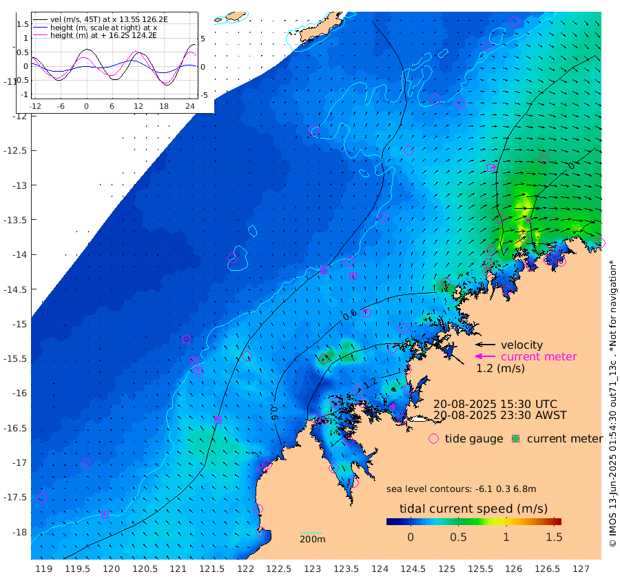 11cm/s -46T +10cm/s rms + 1cm/s 1T. NWSBRW 205m 16cm/s -34T +11cm/s rms + 6cm/s -110T. NWSROW 199m 22cm/s -13T +5cm/s rms + 2cm/s 65T. CAM050 58m 17cm/s -16T +12cm/s rms + 5cm/s 92T. CAM100 99m 4cm/s -28T +7cm/s rms + 1cm/s -85T. KIM400 396m 10cm/s -35T +9cm/s rms + 5cm/s -119T. KIM200 208m 17cm/s -30T +11cm/s rms + 5cm/s -147T. KIM100 99m 17cm/s -27T +8cm/s rms + 3cm/s -103T. KIM050 59m 29cm/s 72T +4cm/s rms + 2cm/s 23T. TIMORS88 91m 46cm Imperieuse Reef 14cm Mermaid Reef 60cm Broome 50cm Cape Baskerville 100cm Red Bluff 41cm Cape Boileau 15cm Scott Reef (WA) 32cm Ashmore Reef 121cm Karrakatta Bay 118cm Sunday Island 136cm Valentine Island 119cm Derby 126cm Port Usborne 126cm Bedford Islands 109cm Yampi Sound (Koolan Island) 127cm Macleay Island 79cm Adele Island -15cm Browse Island 146cm Shale Island 104cm Lizard Island 119cm Hall Point 90cm Degerando Island 49cm White Island 35cm Skua No. 4 Well 37cm Jabiru 50cm Maret Island 37cm Baudin Island 32cm Cape Voltaire (Krait Bay) 31cm Dillon Shoal 17cm Laminaria 32cm Port Warrender 12cm Troughton Island 42cm Cassini Island 17cm West Holothuria Reef Offshore 0cm Jar Island 31cm Lynher Bank 36cm Heywood Shoal 38cm Pee Shoal 6cm Van Cloon Shoal -28cm Carronade Island -31cm Guy Point -28cm Napier Broome Bay -69cm Lesueur Island