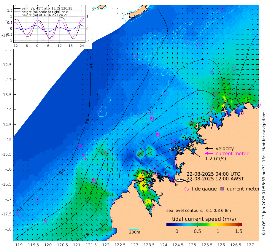 21cm/s -45T +10cm/s rms + 1cm/s 1T. NWSBRW 205m 28cm/s -29T +11cm/s rms + 6cm/s -110T. NWSROW 199m 36cm/s -25T +5cm/s rms + 2cm/s 65T. CAM050 58m 31cm/s -22T +12cm/s rms + 5cm/s 92T. CAM100 99m 8cm/s -29T +7cm/s rms + 1cm/s -85T. KIM400 396m 16cm/s -30T +9cm/s rms + 5cm/s -119T. KIM200 208m 31cm/s -25T +11cm/s rms + 5cm/s -147T. KIM100 99m 37cm/s -19T +8cm/s rms + 3cm/s -103T. KIM050 59m 23cm/s 31T +4cm/s rms + 2cm/s 23T. TIMORS88 91m 127cm Imperieuse Reef 62cm Mermaid Reef 193cm Broome 141cm Cape Baskerville 189cm Red Bluff 156cm Cape Boileau 66cm Scott Reef (WA) 99cm Ashmore Reef 260cm Karrakatta Bay 251cm Sunday Island 243cm Valentine Island 202cm Derby 246cm Port Usborne 265cm Bedford Islands 289cm Yampi Sound (Koolan Island) 316cm Macleay Island 194cm Adele Island 50cm Browse Island 363cm Shale Island 334cm Lizard Island 220cm Hall Point 248cm Degerando Island 197cm White Island 105cm Skua No. 4 Well 76cm Jabiru 171cm Maret Island 145cm Baudin Island 159cm Cape Voltaire (Krait Bay) 99cm Dillon Shoal 30cm Laminaria 187cm Port Warrender 126cm Troughton Island 155cm Cassini Island 107cm West Holothuria Reef Offshore 111cm Jar Island 114cm Lynher Bank 130cm Heywood Shoal 104cm Pee Shoal 81cm Van Cloon Shoal 66cm Carronade Island 66cm Guy Point 74cm Napier Broome Bay 2cm Lesueur Island