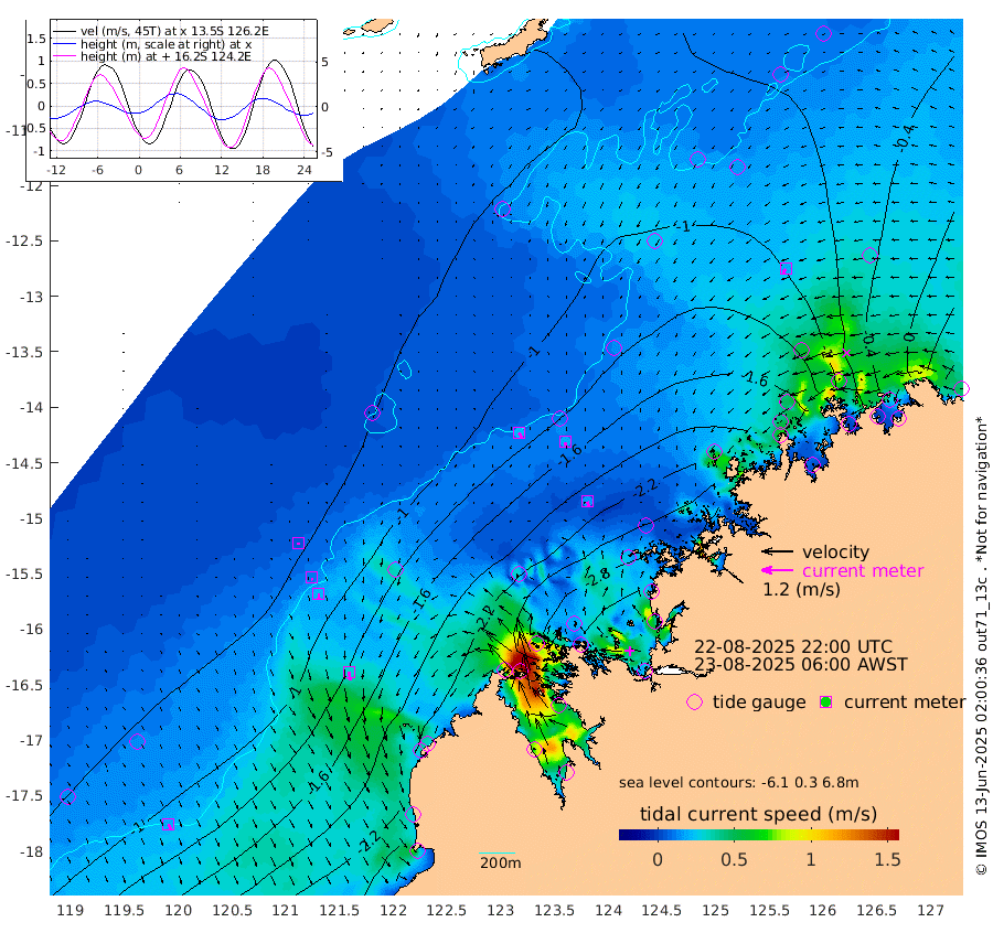 22cm/s 141T +10cm/s rms + 1cm/s 1T. NWSBRW 205m 20cm/s 159T +11cm/s rms + 6cm/s -110T. NWSROW 199m 17cm/s 164T +5cm/s rms + 2cm/s 65T. CAM050 58m 19cm/s 165T +12cm/s rms + 5cm/s 92T. CAM100 99m 6cm/s 176T +7cm/s rms + 1cm/s -85T. KIM400 396m 11cm/s 177T +9cm/s rms + 5cm/s -119T. KIM200 208m 23cm/s 177T +11cm/s rms + 5cm/s -147T. KIM100 99m 32cm/s 176T +8cm/s rms + 3cm/s -103T. KIM050 59m 19cm/s -137T +4cm/s rms + 2cm/s 23T. TIMORS88 91m -104cm Imperieuse Reef -70cm Mermaid Reef -241cm Broome -169cm Cape Baskerville -213cm Red Bluff -165cm Cape Boileau -69cm Scott Reef (WA) -89cm Ashmore Reef -259cm Karrakatta Bay -239cm Sunday Island -174cm Valentine Island -99cm Derby -190cm Port Usborne -294cm Bedford Islands -320cm Yampi Sound (Koolan Island) -361cm Macleay Island -218cm Adele Island -76cm Browse Island -393cm Shale Island -360cm Lizard Island -265cm Hall Point -276cm Degerando Island -229cm White Island -98cm Skua No. 4 Well -58cm Jabiru -191cm Maret Island -156cm Baudin Island -165cm Cape Voltaire (Krait Bay) -65cm Dillon Shoal -20cm Laminaria -185cm Port Warrender -92cm Troughton Island -153cm Cassini Island -91cm West Holothuria Reef Offshore -79cm Jar Island -127cm Lynher Bank -132cm Heywood Shoal -81cm Pee Shoal -31cm Van Cloon Shoal -16cm Carronade Island -14cm Guy Point -11cm Napier Broome Bay 91cm Lesueur Island